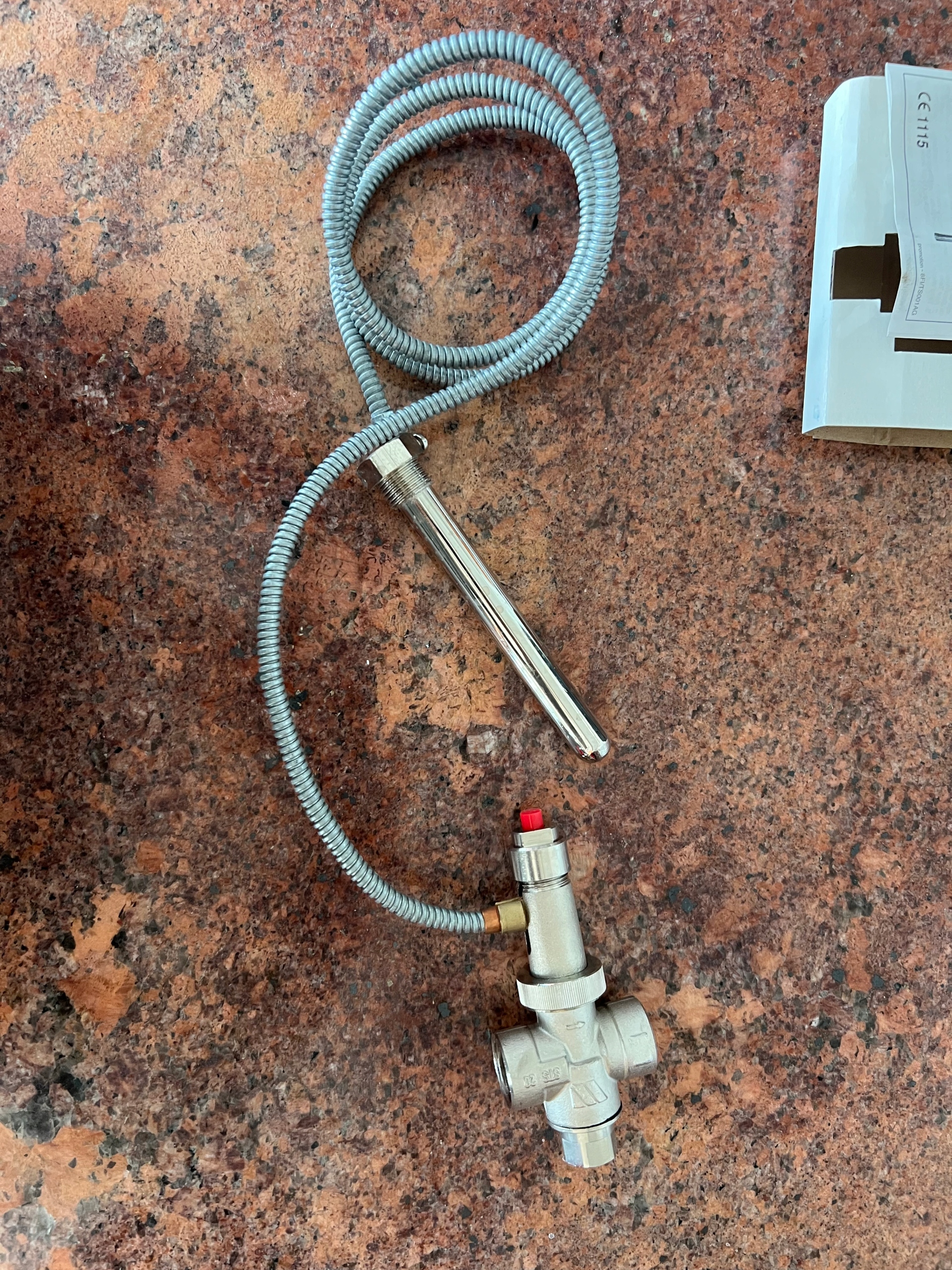 Watts STS 20 клапан, датчик якого розміщується в задній частині котла, захищає його від перегріву наступним чином: якщо температура води збільшиться вище 95 ° C, то клапан дозволить спіраль охолодження води з системи водопостачання, яка збирає надмірну теплову енергію та вивільниться. Якщо на потік води в спіралі охолоджується клапан клапана, обладнайте спіраль охолодження захисним клапаном 6 - 10 бар, щоб запобігти будь -якому зворотному потоку води через зниження тиску в системі водопостачання. Крім того, ви також можете встановити судно з колективним судном з обсягом щонайменше 8 л.
