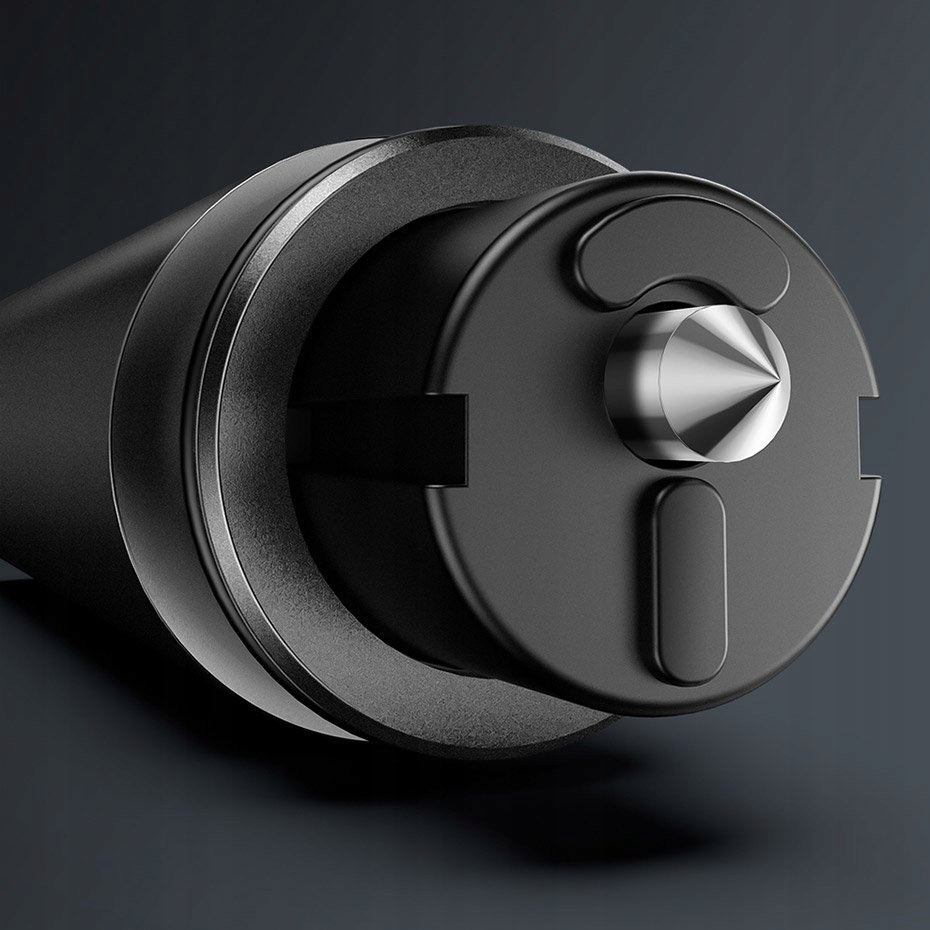 Компактний рятувальний пристрій для розбивання ременів безпеки, який має бути частиною спорядження кожного водія. Пружинний запобіжний молоток Baseus і різак для ременів безпеки полегшить вивільнення з автомобіля в небезпечній для життя ситуації.