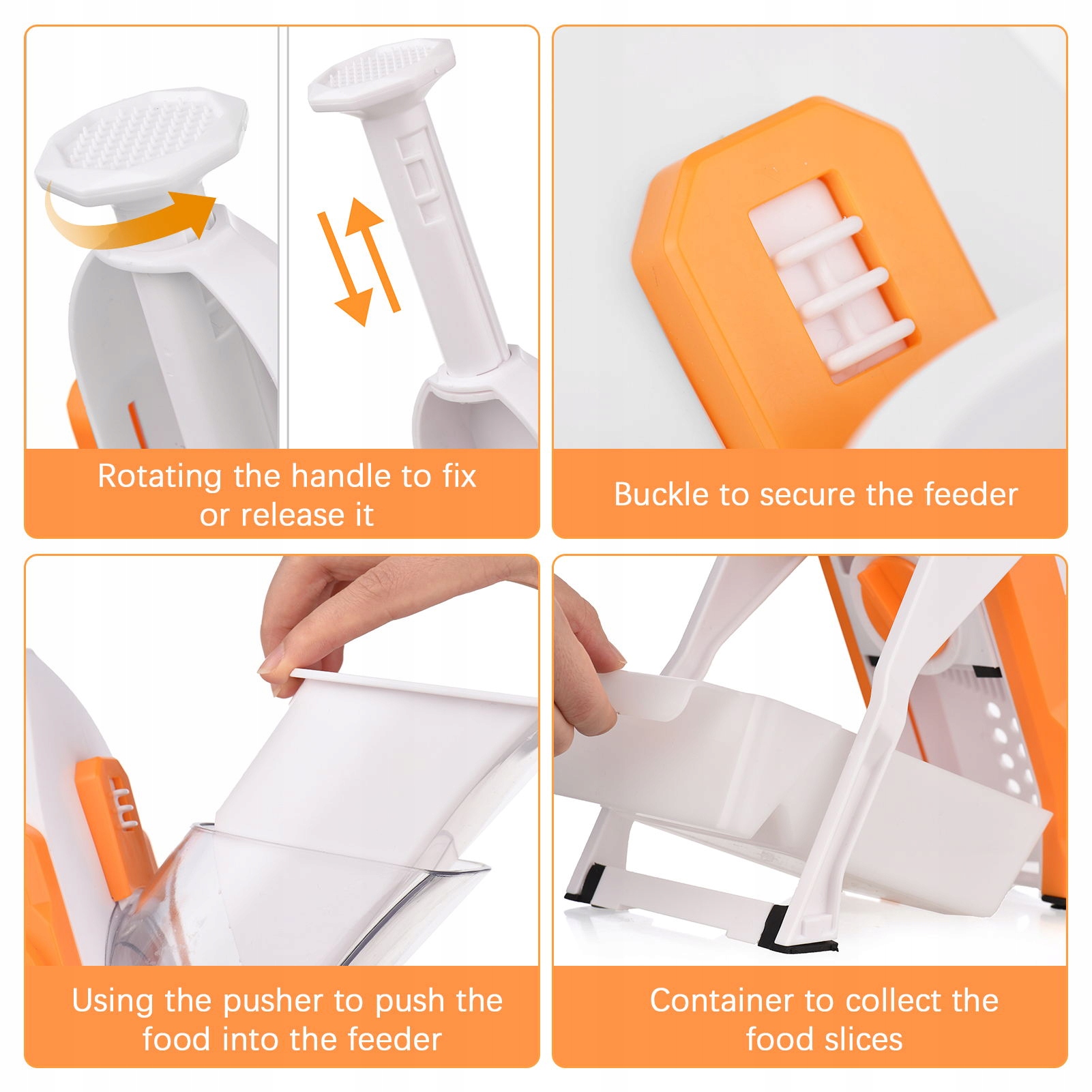 2. Різний вибір товщини: з 8 різною товщиною різання (0,5 мм-8 мм), які відповідають вашим потребам різання, ременя, джульєн та кісток; Включає додаткове лезо для заміни.
