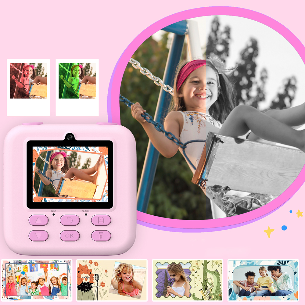 - ✔ Завдяки негайній функції друку, ви можете зберегти кольорові фотографії на SD -картці та в той же час друкувати чорно -білі. Пристрій пропонує два режими друку: сірий друк та друк голки, а також три глибини чорно -білого друку.