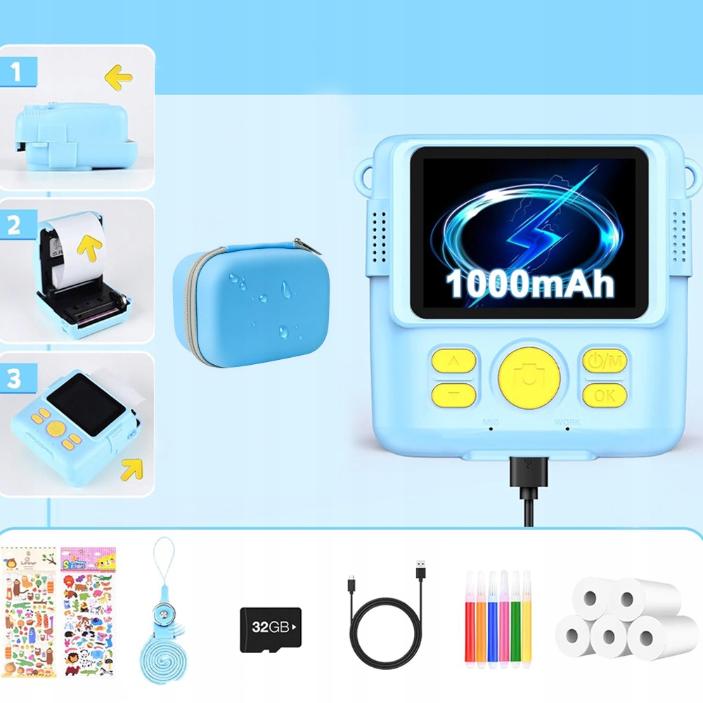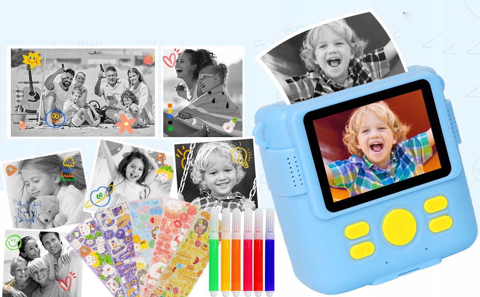 📷 【негайний друкарський апарат для дітей】: Завдяки технології теплового друку, діти можуть легко друкувати без тонера. Просто виберіть режим фотографій і натисніть кнопку "Захоплення", і з’явиться чорно -біле зображення. Давайте зробимо веселі фотографії з родиною та друзями завдяки розумному спалаху, автоматичній виставці у випадку нічних фотографій, хорошої видимості та великих ефектів. Flash, Time -Photos, серійні фотографії, ігри, рамки фільтрів та MP3. Це може задовольнити різні потреби дітей. Це хороший вибір супроводжувати своїх дітей і дозволити їм щасливо вирости. Принесіть чудові моменти вам та вашій родині. Зарядка через USB -тип С дуже зручна під час подорожі. Відповідний повідок також прикріплений до дитячої камери, що полегшує дітям носити його з собою. Зручно для запису життя. 32 ГБ Micro SD -карти не потрібно купувати окремо; 6 барвистих олівців дозволяють дітям використовувати свою уяву та творчість на друкованих чорно-білих фотографіях. Діти можуть використовувати його, щоб зняти селфі, влог і записувати своє життя щохвилини.