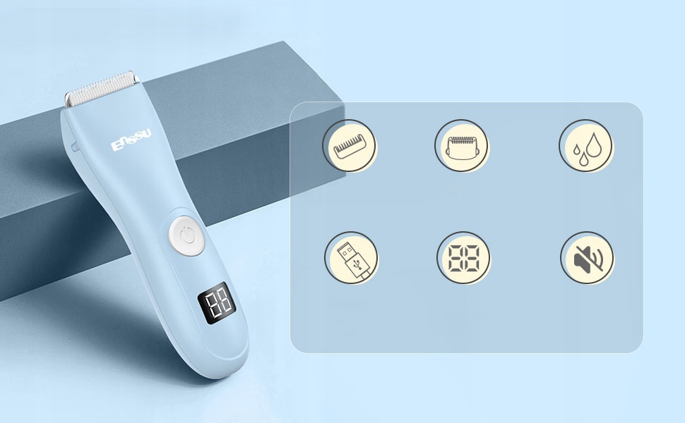 - Ця дитяча машинка для стрижки оснащена візуальним індикатором заряду, який чітко показує рівень заряду під час використання та заряджання.