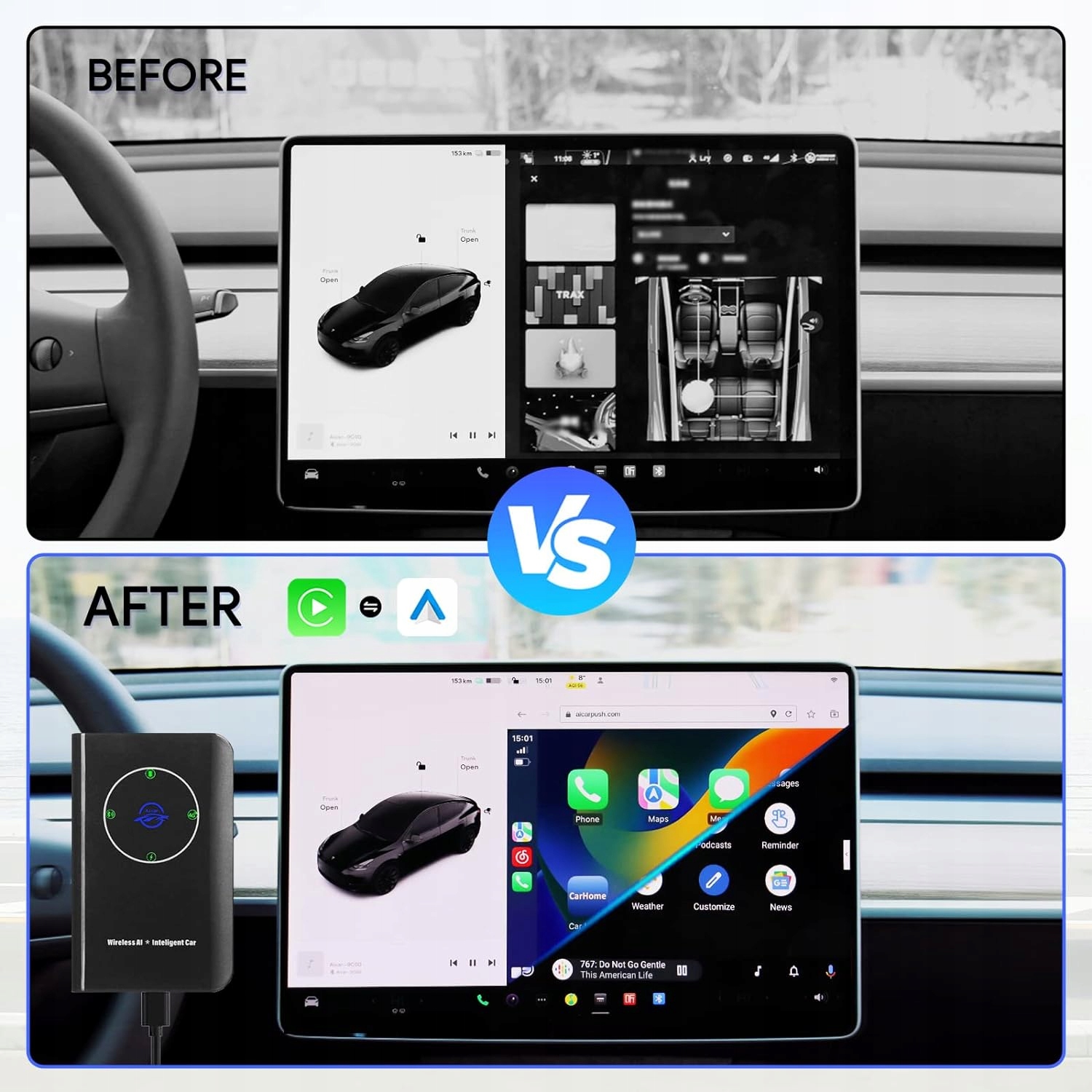 Бездротовий автомобільний адаптер CarPlay і Android: бездротовий автомобільний адаптер CarPlay і бездротовий Android для вашого автомобіля Tesla.
