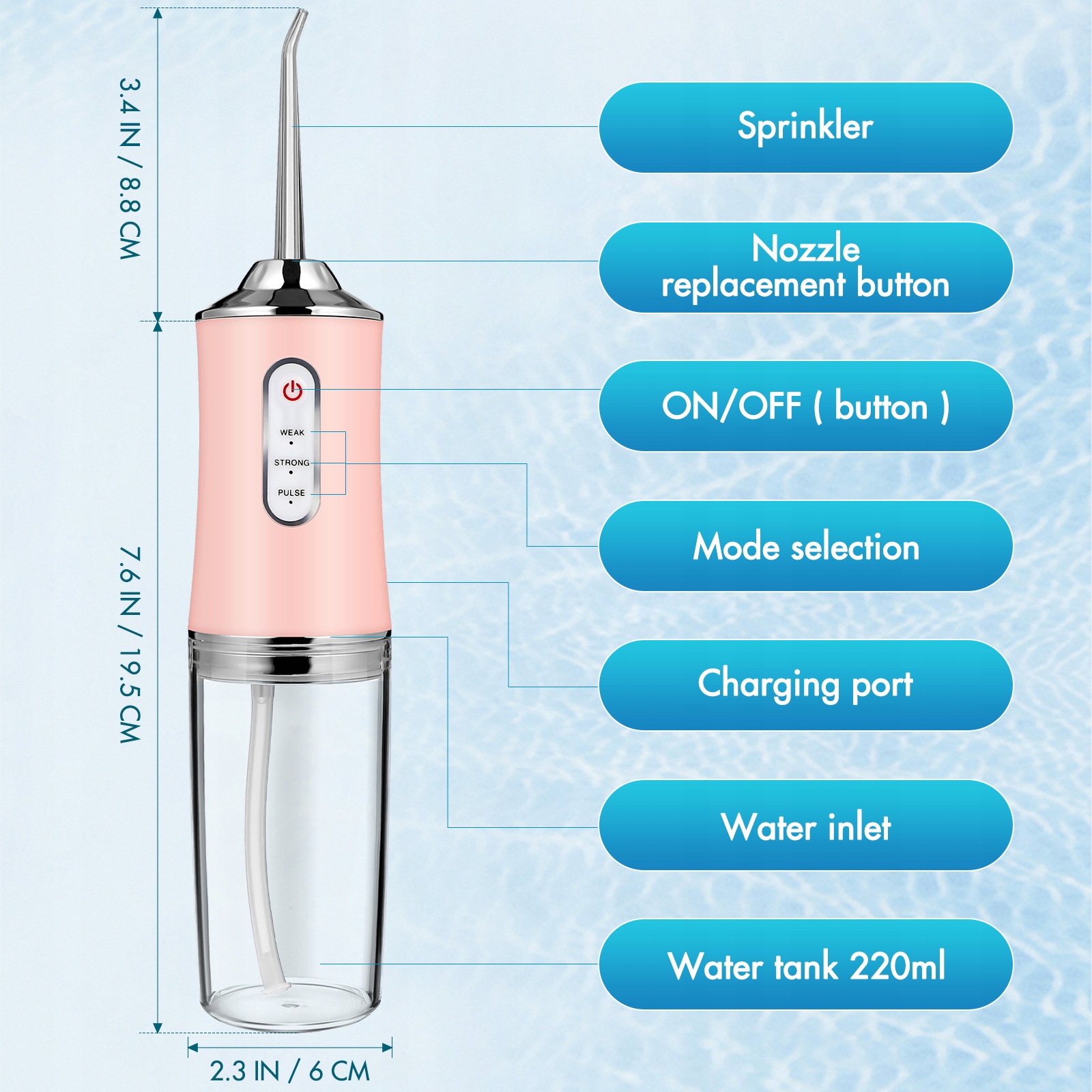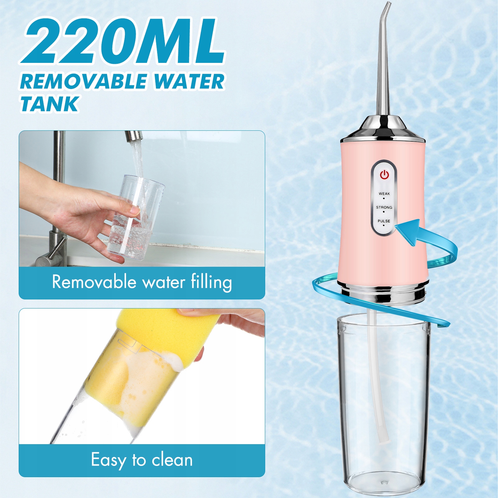 BEZPRZEWODOWY ELEKTRYCZNY IRYGATOR DO ZĘBÓW | NAWADNIANIE UST | RÓŻOWY