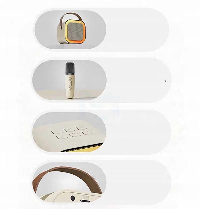 Бездротовий набір для караоке з двох частин мікрофон + динамік. Їх можна використовувати разом або окремо. Це легке джерело розваг і компаньйон для вечірок. Товар міцно виготовлений і має цікавий сучасний дизайн!
