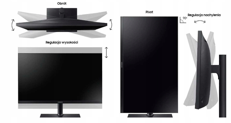 Samsung S24H850QFU - це не тільки красиве зображення, але і висока функціональність. Монітор має повний спектр регулювань - можливість обертання, нахилу та регулювання висоти - що дозволяє адаптувати його до індивідуальних потреб користувача. Завдяки опції повороту ви можете легко перевести екран у портретний режим, що особливо корисно під час роботи з документами чи кодом.