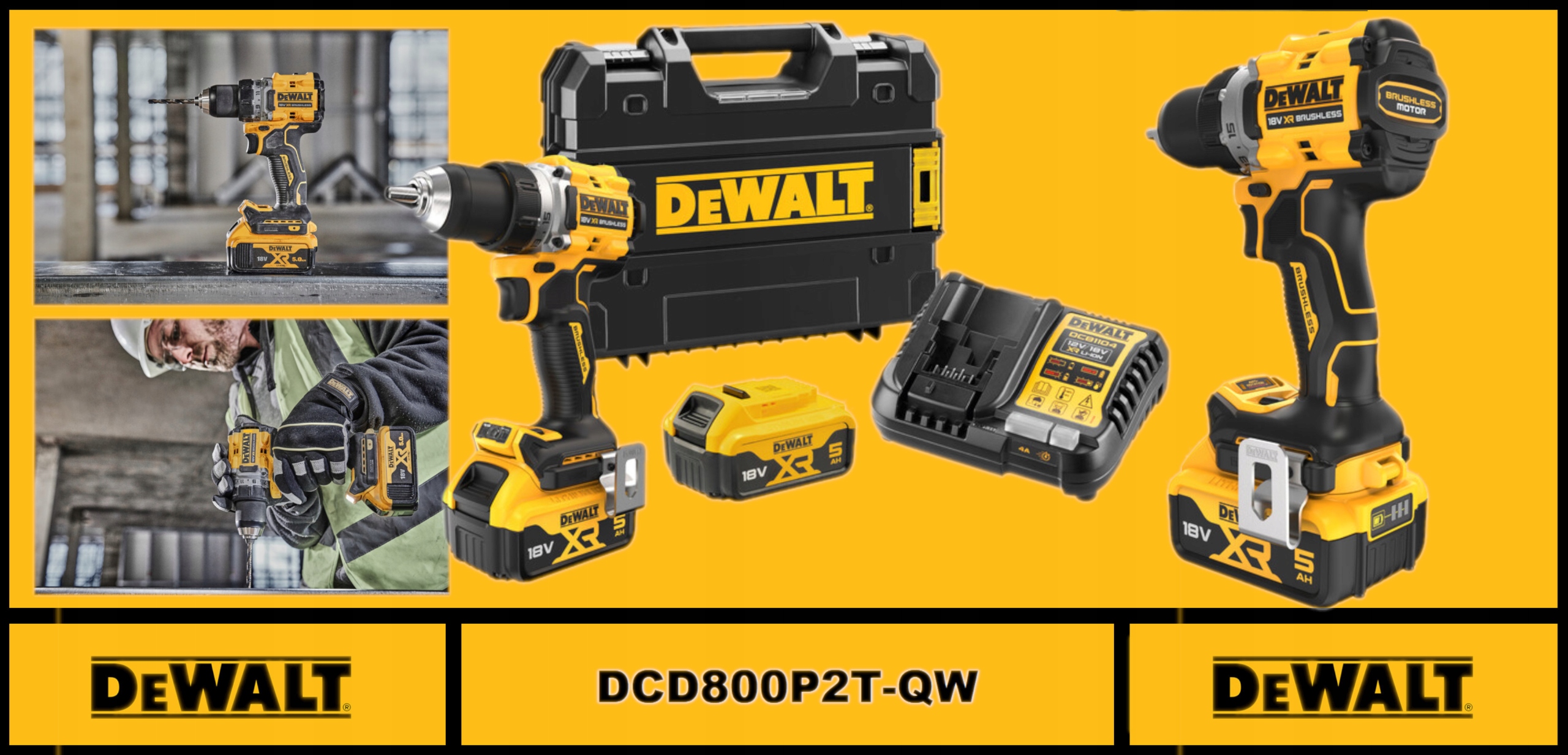 Безщіточна дриль DeWALT 18 В XR - 2 X 5AH -> DCD800P2T-QW