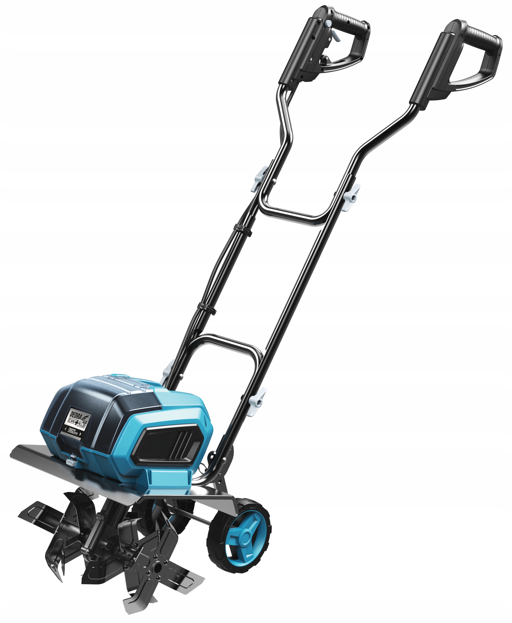 Компель 36 В DEDRA SAS+ALL DED7190V — це пристрій, що живиться від двох батарей із серії DEDRA SAS+ALL (батареї купуються окремо). Він оснащений безщітковим двигуном, який ще ефективніше використовує енергію батарей. Завдяки використанню Li-Ion акумуляторів були досягнуті дуже хороші параметри роботи з необмеженою мобільністю, як у випадку з класичними електроінструментами. Велика робоча ширина (36 см) дозволяє швидко і ефективно працювати. Пристрій оснащений чотирма комплектами гострих загартованих ножів діаметром 200 мм, розміщених на обертовому валу, а їхня спеціально вигнута форма забезпечує ефективне перемішування та заглиблення в ґрунт на глибину до 220 мм. Так звана ручка кермо можна скласти для транспортування або зберігання без використання інструментів - просто поверніть гайки, і все готово.
