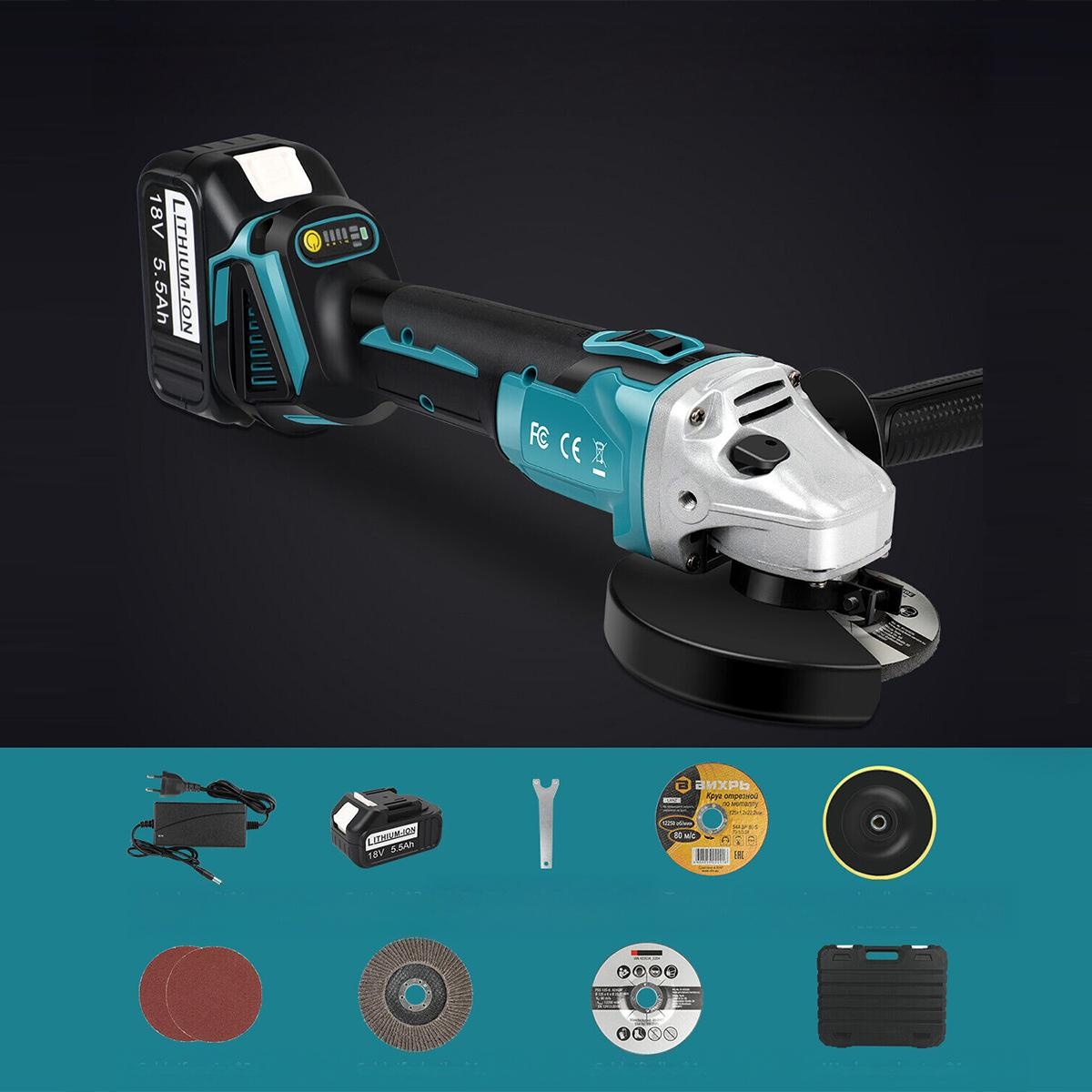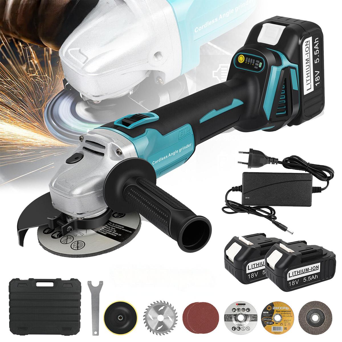 У комплекті 2 літій-іонні акумулятори по 5500 мАг (універсальні) та зарядний пристрій. Використовуйте свою кутову шліфувальну машину без кабелів. Універсальна сумісність, ви також можете використовувати свій власний літій-іонний акумулятор Makita 18 В/21 В (не входить у комплект).