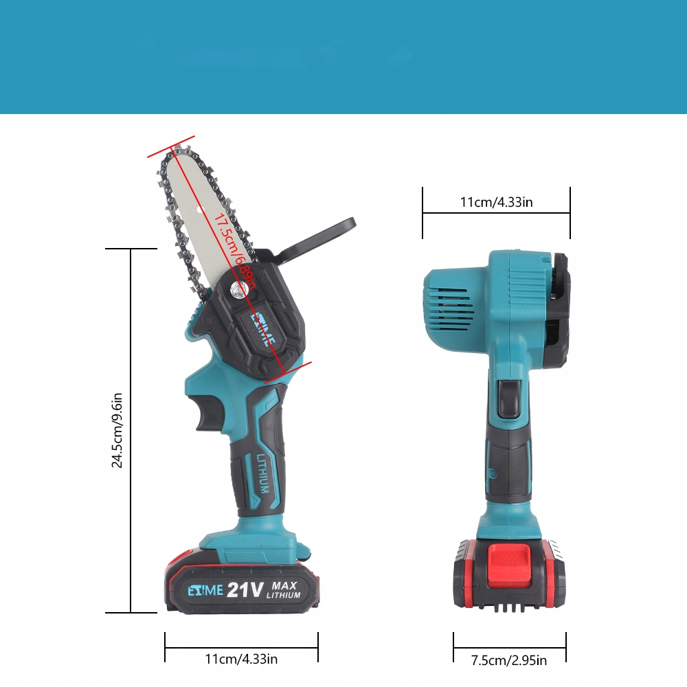 Безщівний ланцюг пилки 21 В батарея 4 "міні -гілка