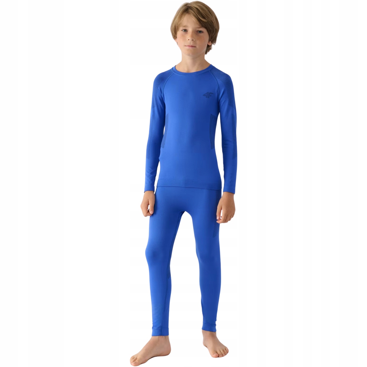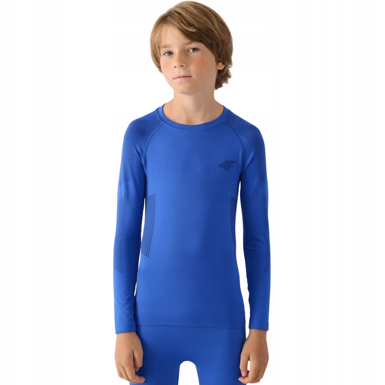 Термобілизна для хлопчика 4F ідеально підходить як перший шар одягу, який у поєднанні з теплим флісом та лижною курткою гарантує неперевершений комфорт у холодні та зимові дні. Комплект, що включає футболку з круглим вирізом і штани, створює безшовну технічну конструкцію з еластичних волокон, підтриманих технологією 4FSkin, яка відповідає за дуже хорошу посадку, створюючи відчуття другої шкіри.