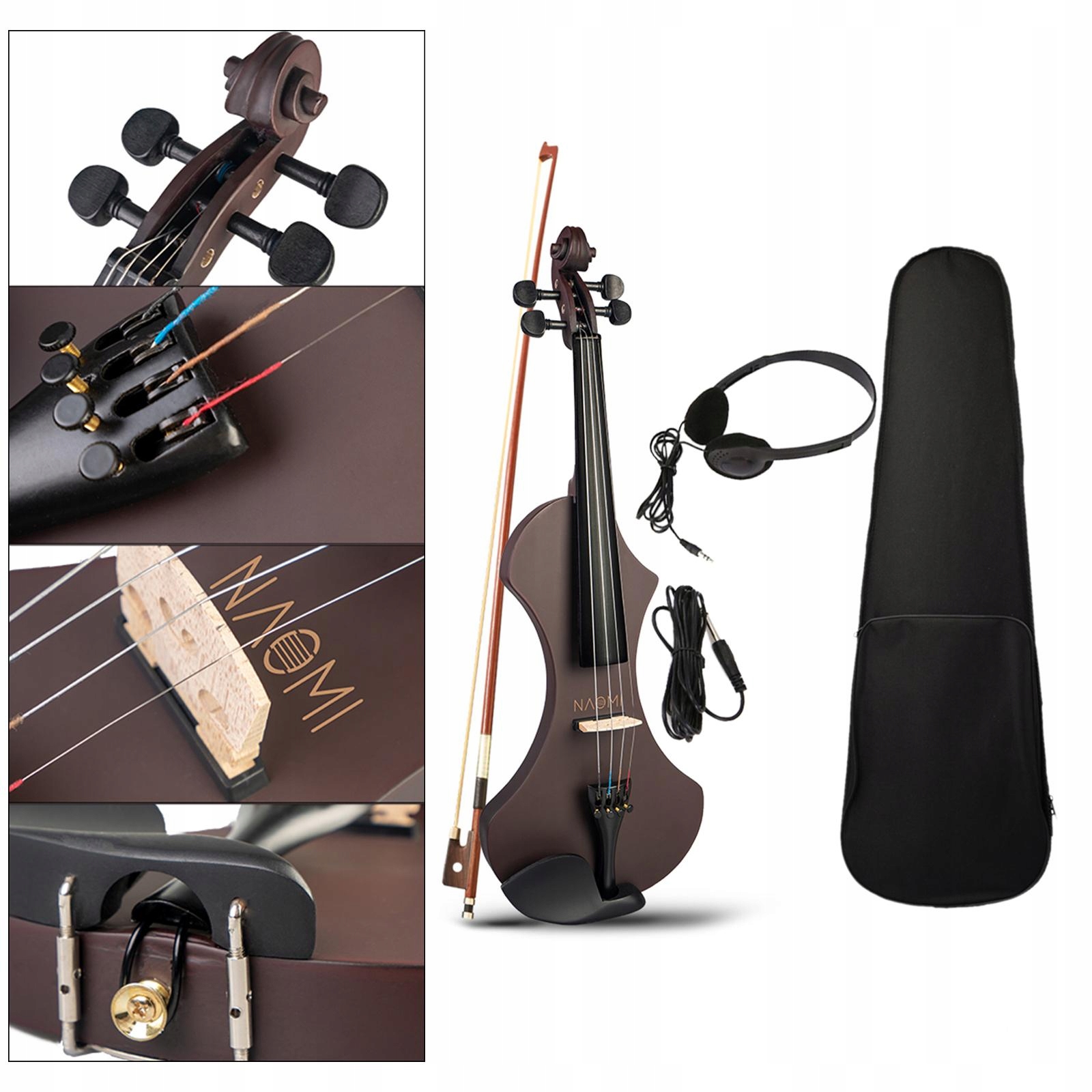 Тиха електроскрипка 4/4 з аксесуарами для скрипки. Футляр для смичка скрипки коричневого кольору
