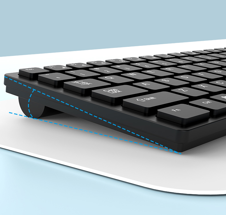 Клавіатура трохи нахилена під кутом 8 градусів. Завдяки цьому вам буде зручніше писати на ньому та ваші руки будуть краще відпочивати.