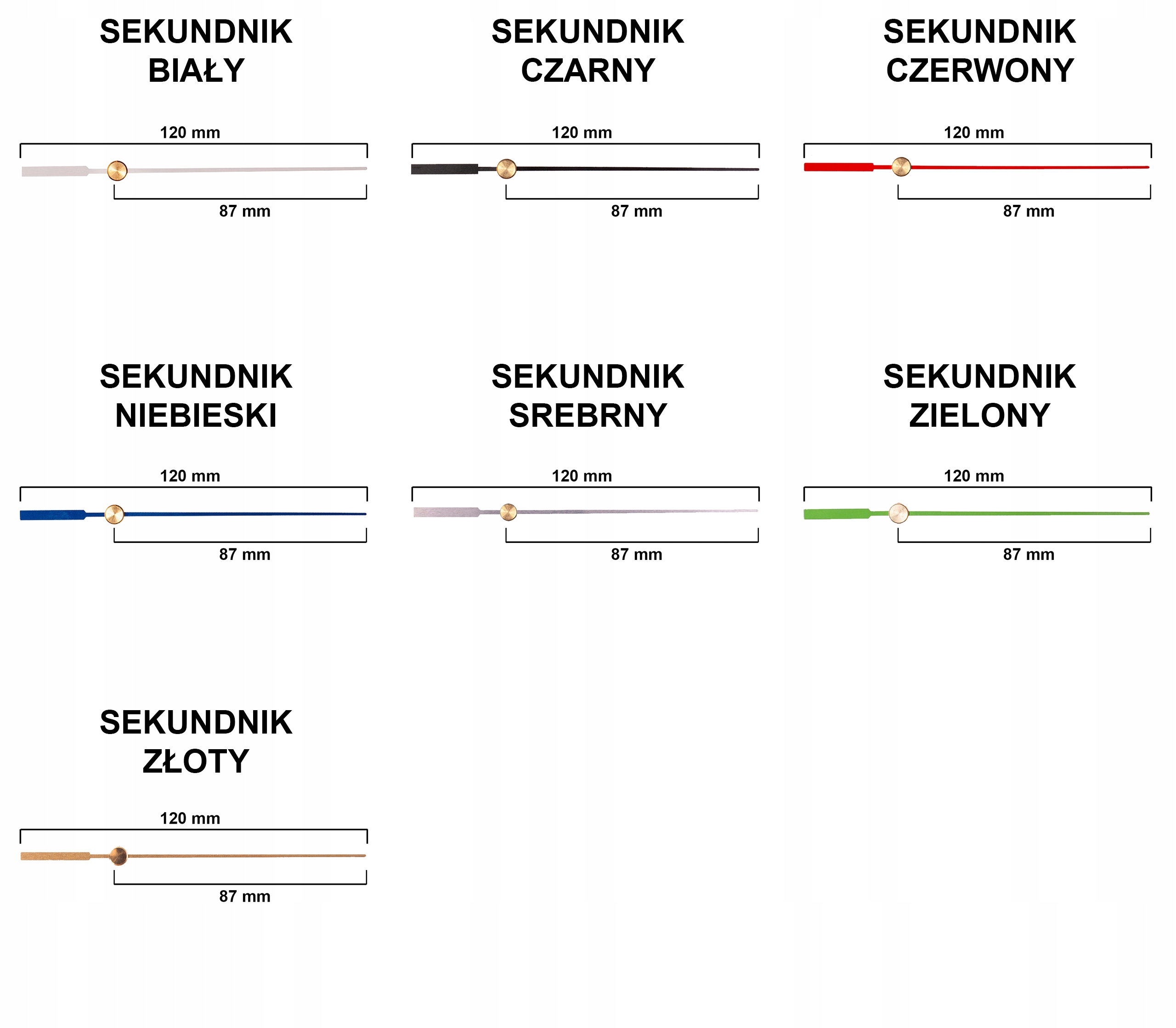 Представлений набір складається з трьох стрілок з такими розмірами: - годинна стрілка 65 мм - хвилинна стрілка 10 см - секундна стрілка 11 см
