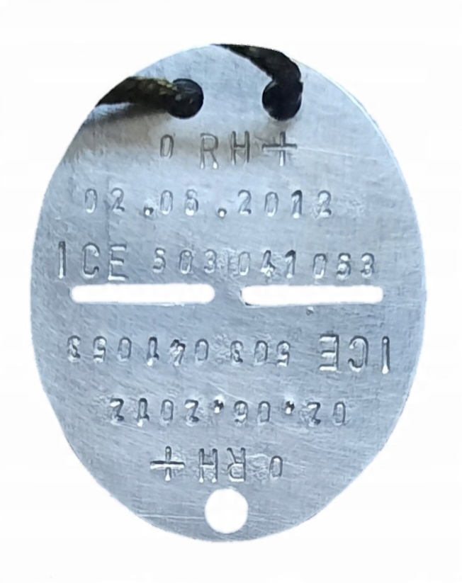 ім'я, прізвище, група крові, віросповідання, номер PESEL, дата народження, місто/країна, інструкція щодо здоров'я, номер телефону близької людини.