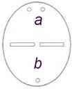 Овальна алюмінієва пластина розміром 40x50x1,5 мм, штампована з обох сторін, підвішена на зеленій нитці довжиною 75 см.