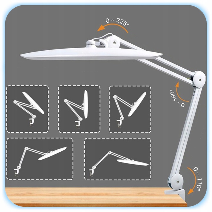 Міцний затиск дозволяє встановити лампу практично на будь-яку стільницю, а регульований кронштейн дозволяє розташувати світло саме там, де вам це потрібно.