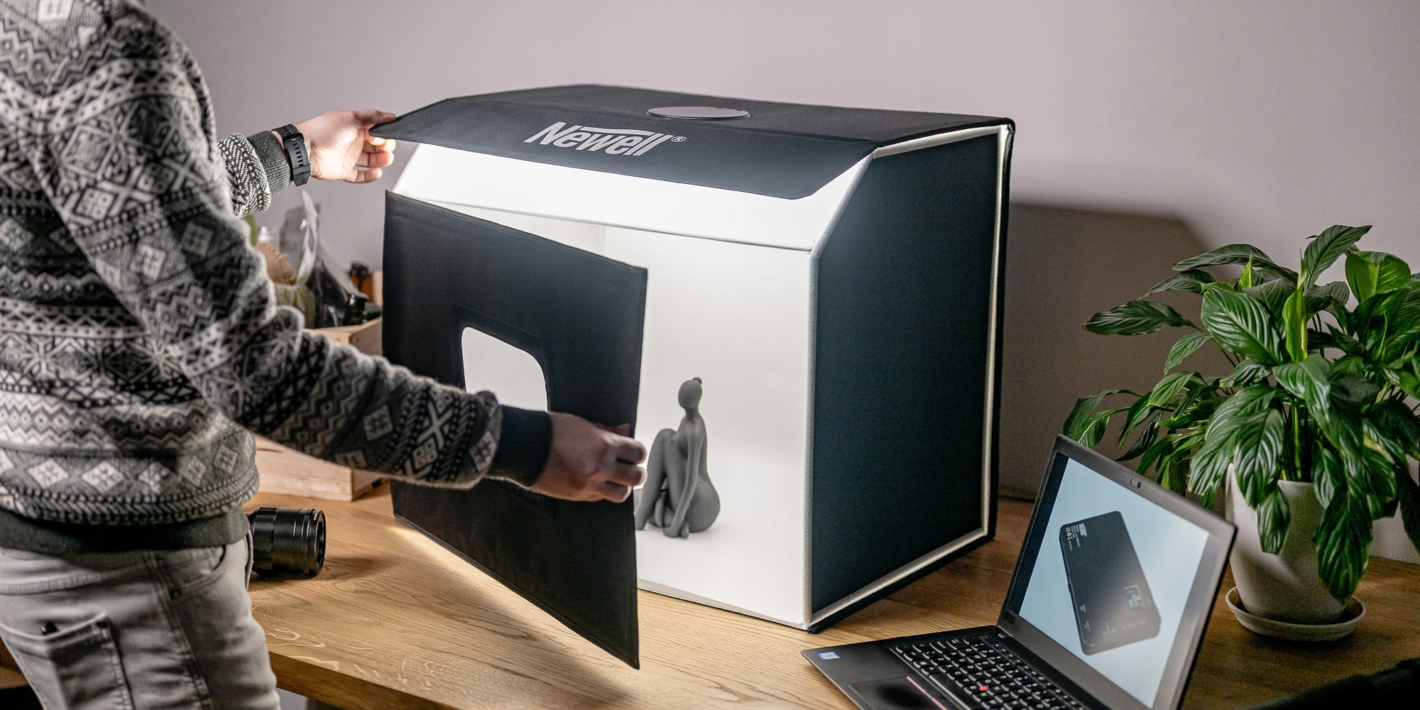Ергономічний дизайн намету Newell M60 дозволяє робити безтіньові фотографії продуктів декількома різними способами.
