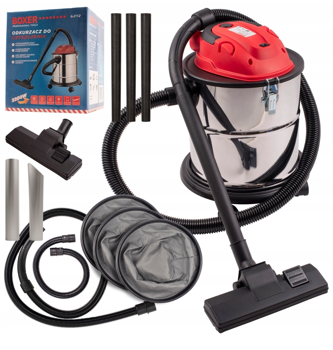 electric ash separator Boxer is a very powerful 2200W engine and appropriate engine Його захист фільтром HEPA. Пристрій використовується для вакуумного золи з різних видів печей, димоходів і важкодоступних місць, де накопичується пил і як промисловий вакуумний очищувач.