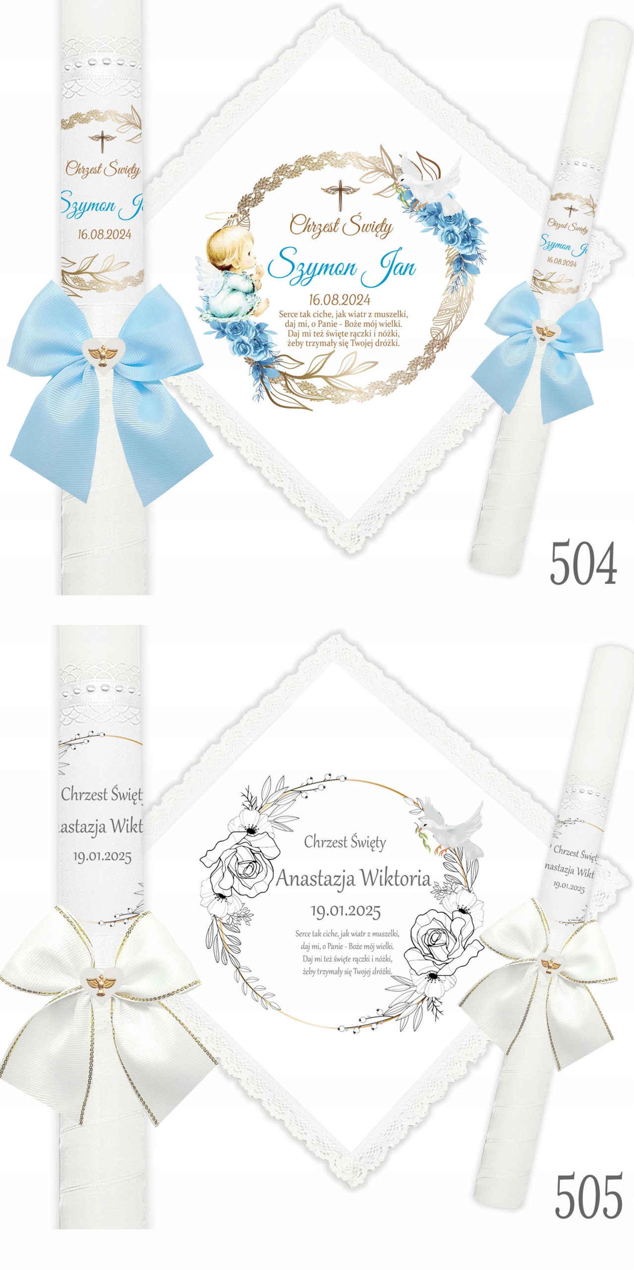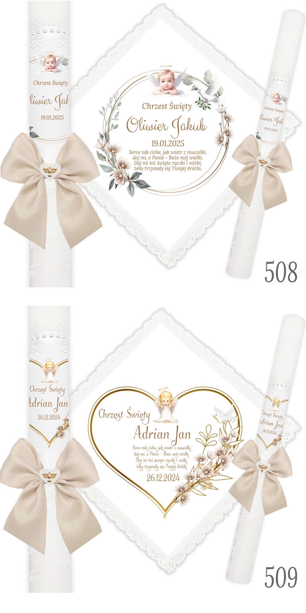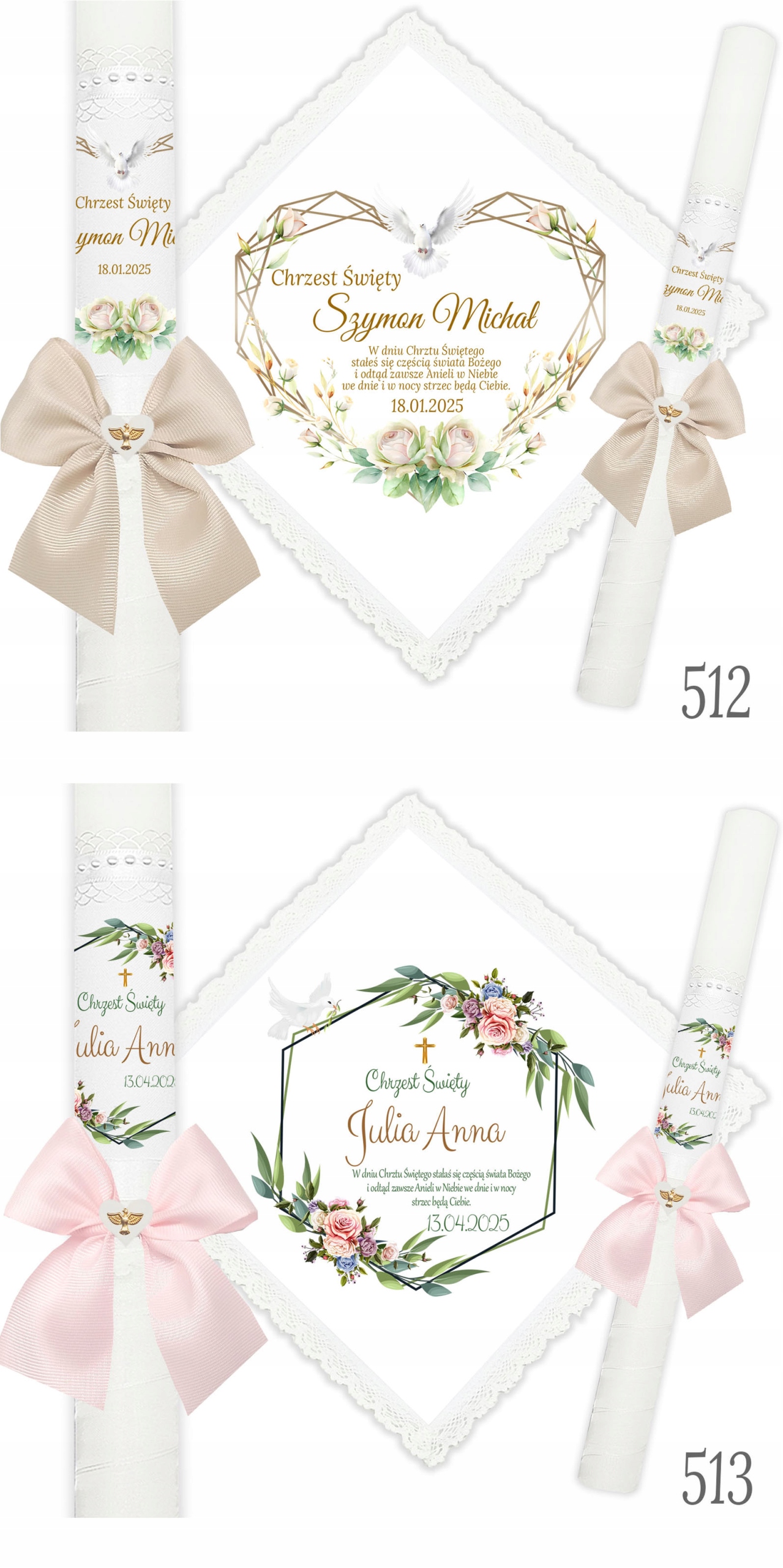 BIAŁA SZATKA I ŚWIECA DO CHRZTU CHRZEST IMIĘ