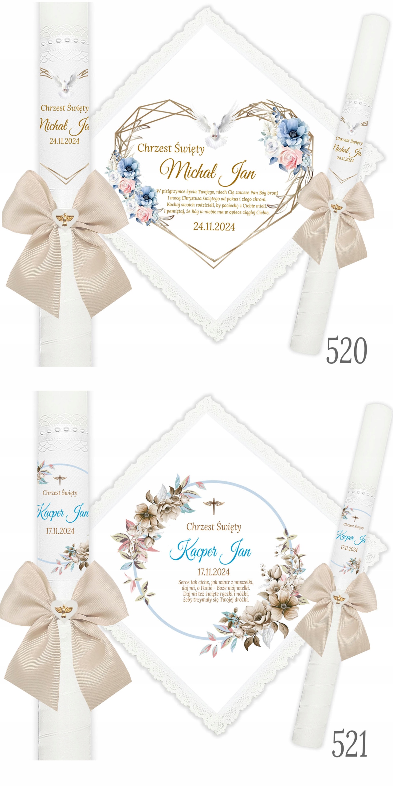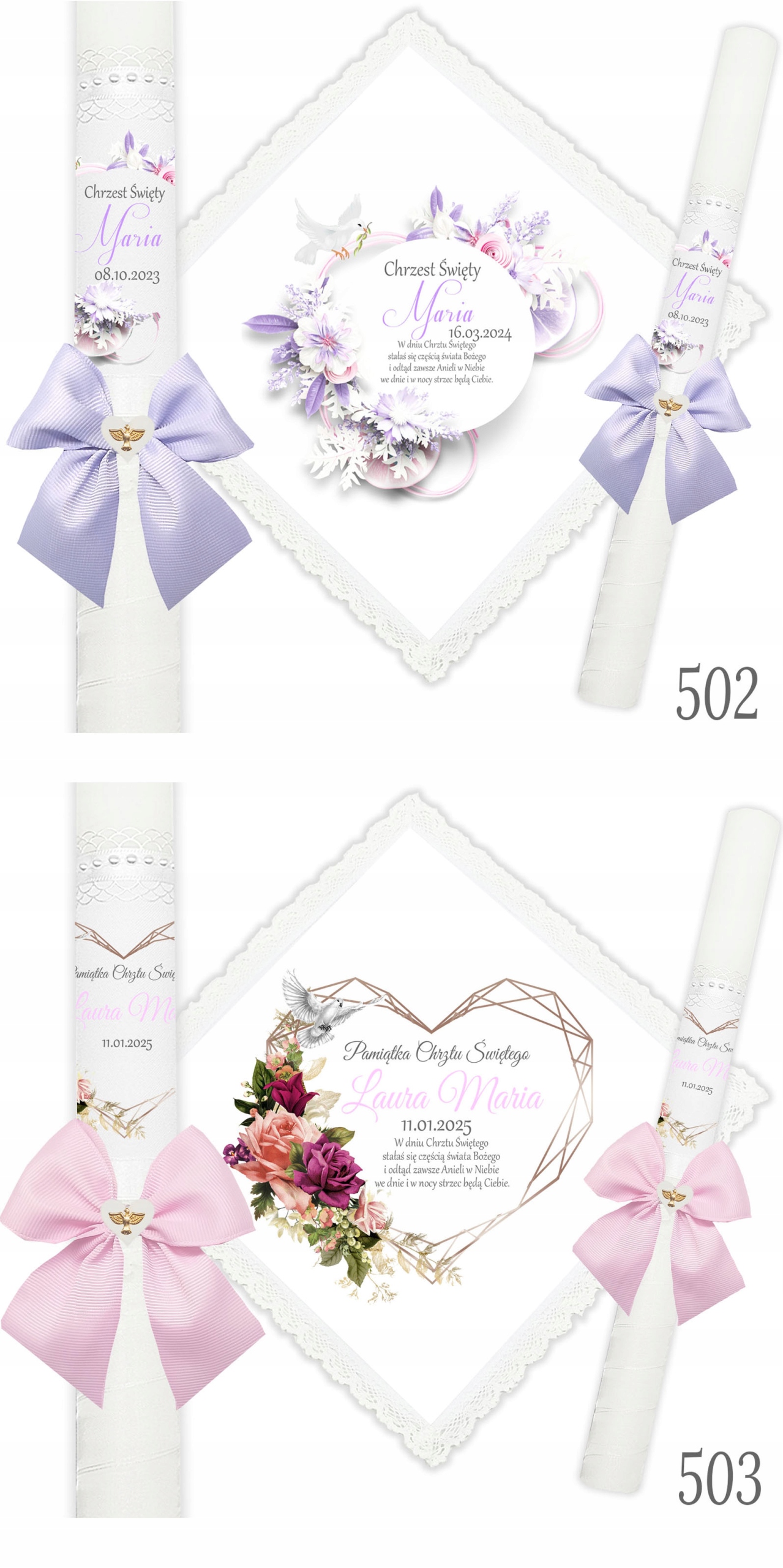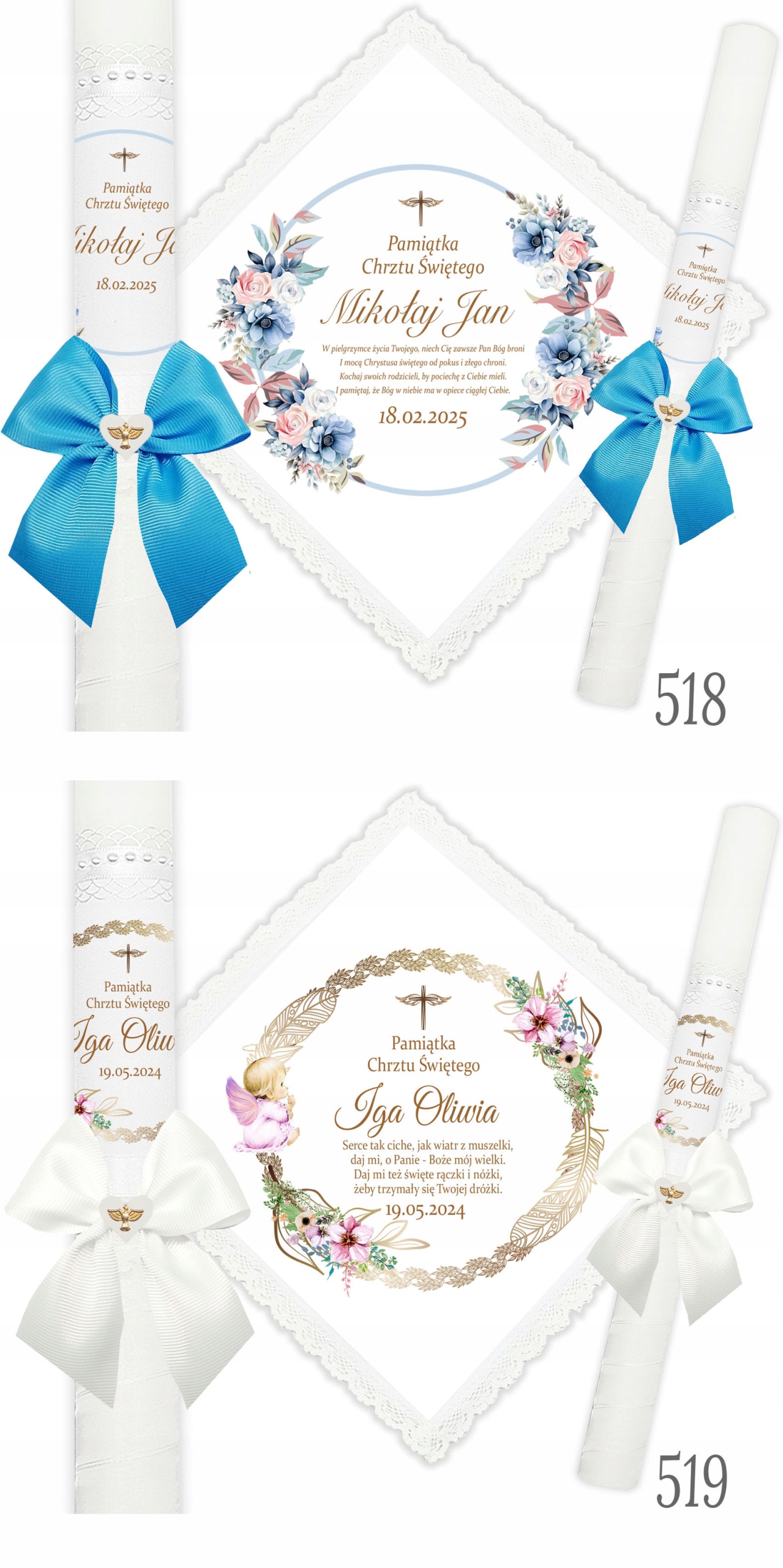 BIAŁA SZATKA I ŚWIECA DO CHRZTU CHRZEST IMIĘ