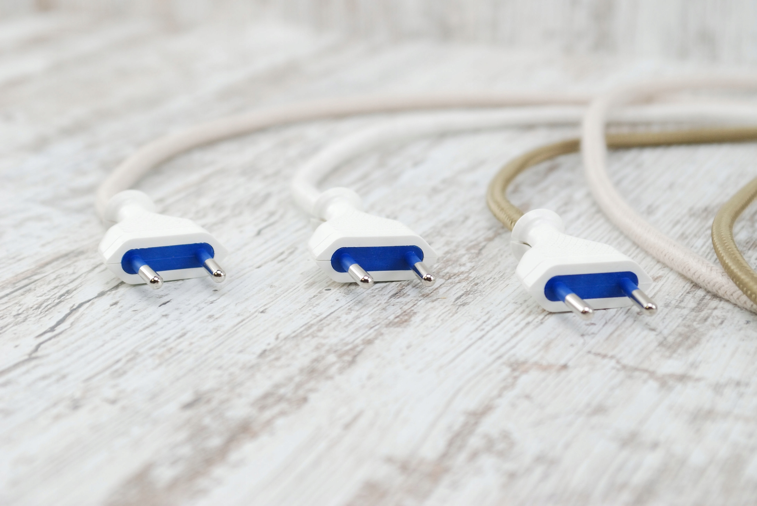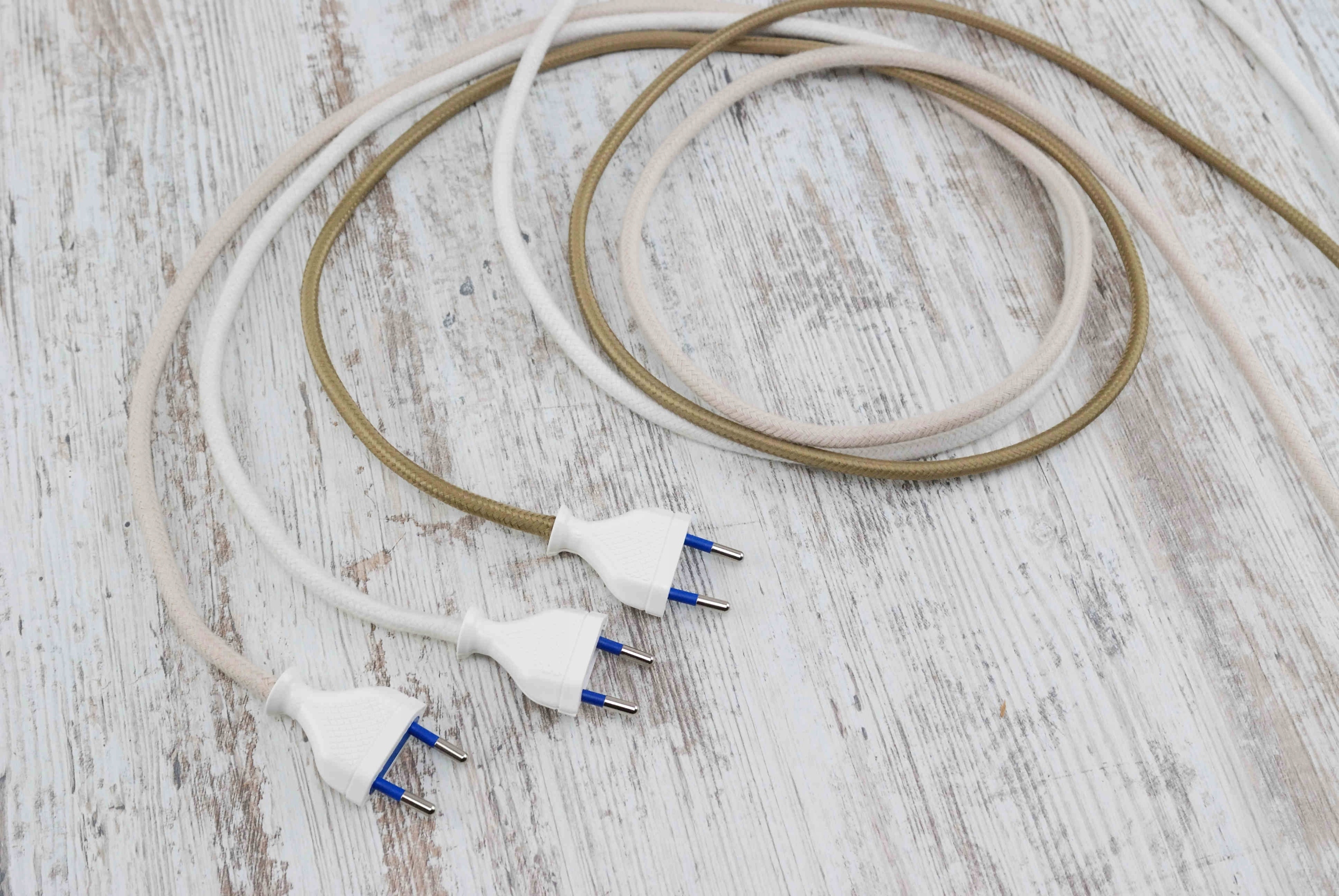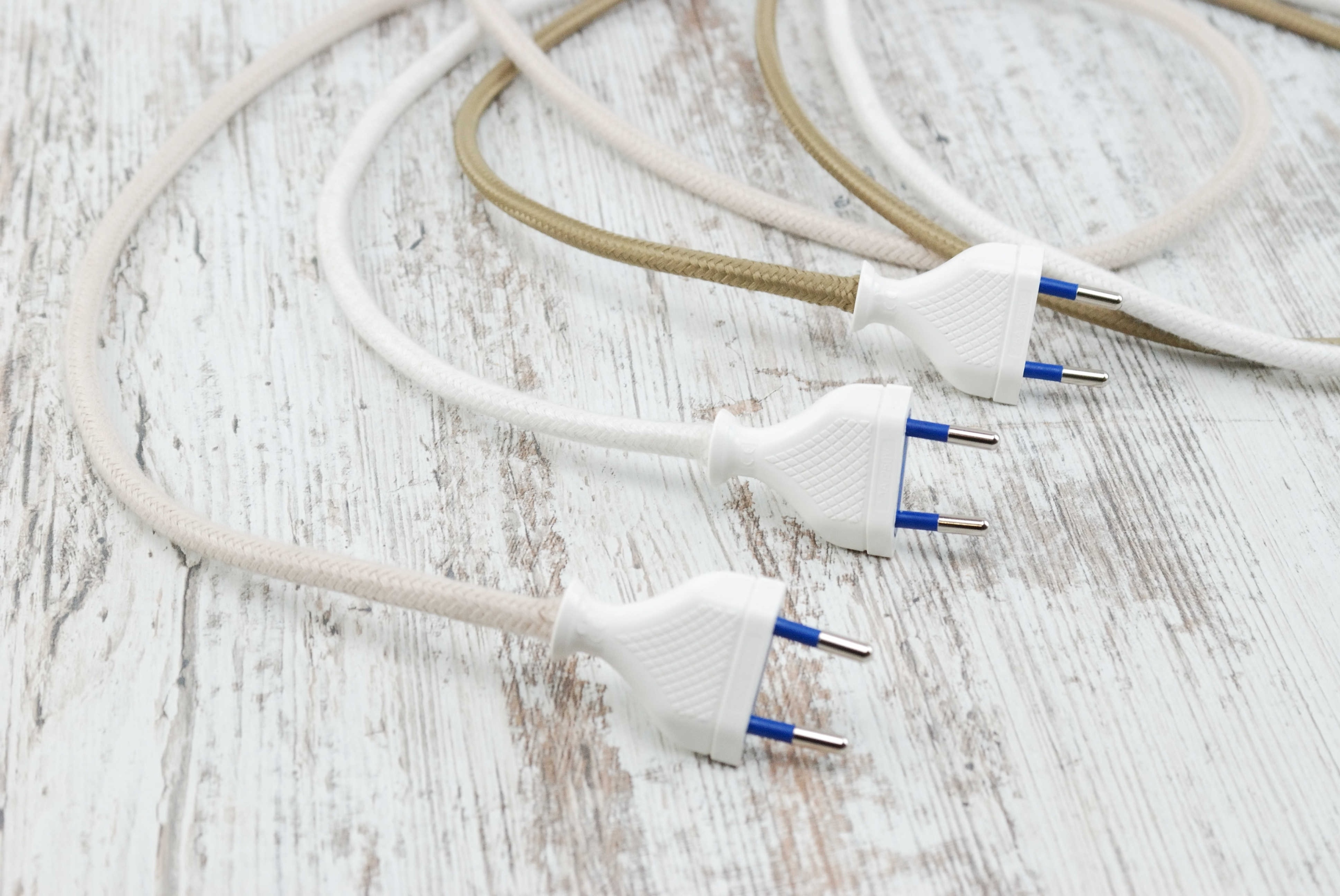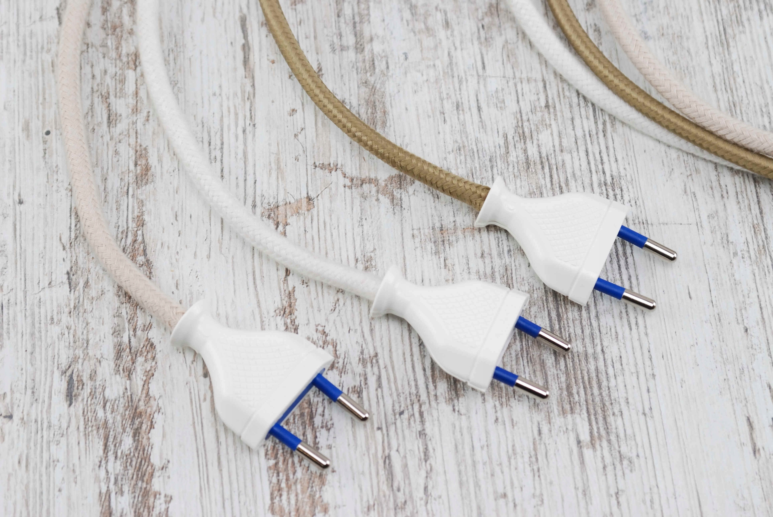 biała wtyczka PRL do kabla przewodu w oplocie LOFT design retro lampa DIY
