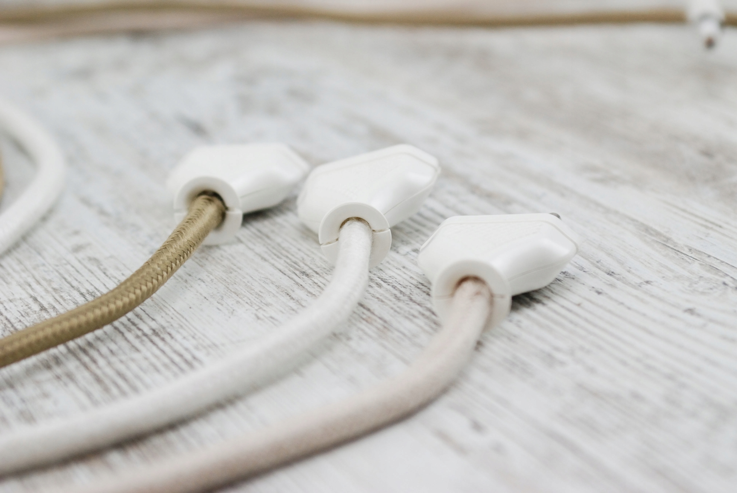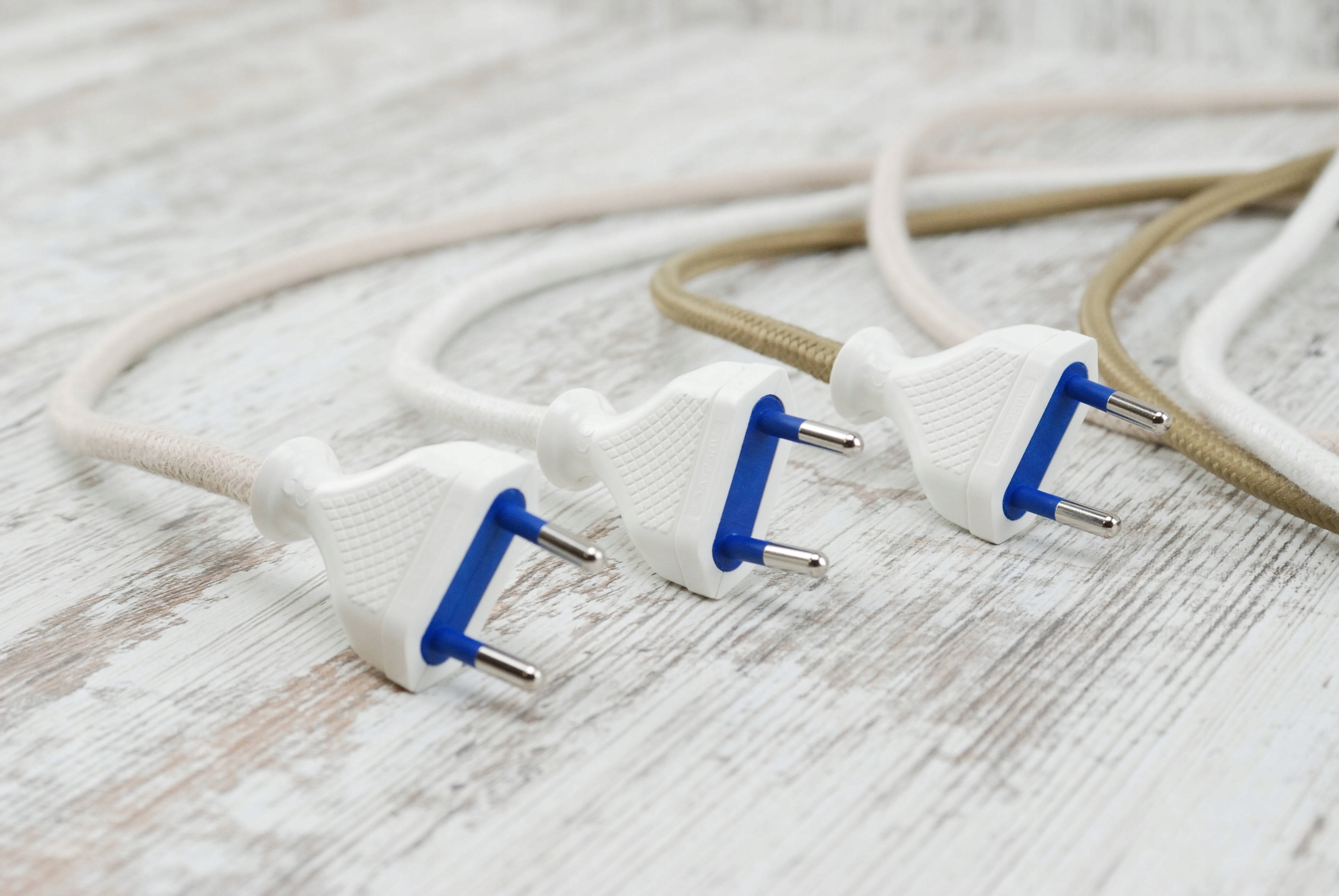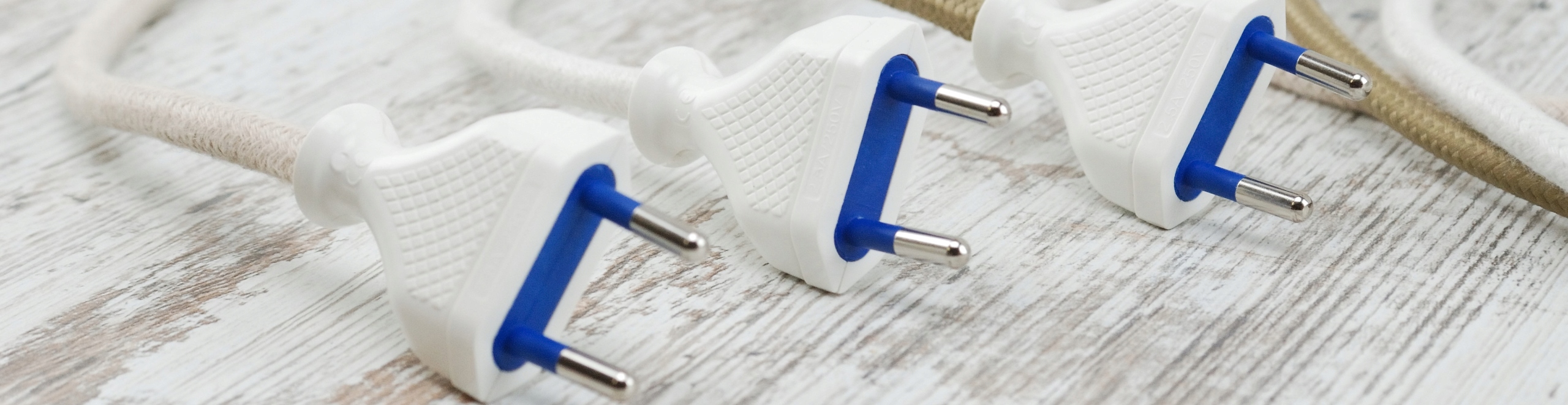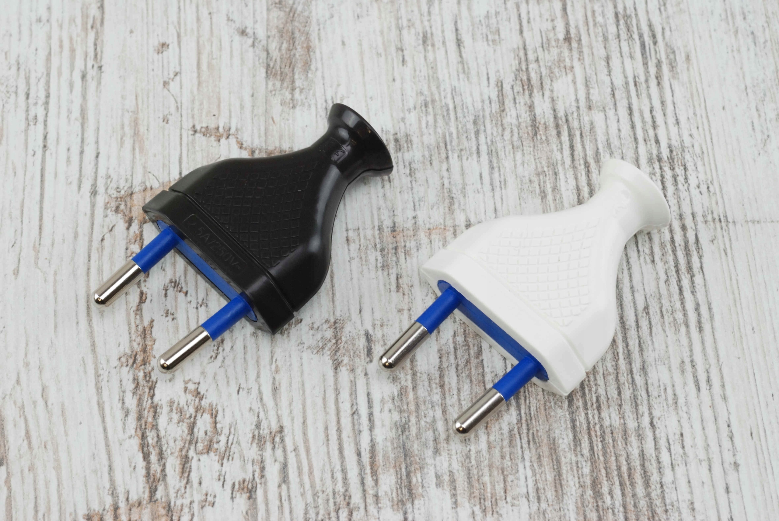 biała wtyczka PRL do kabla przewodu w oplocie LOFT design retro lampa DIY