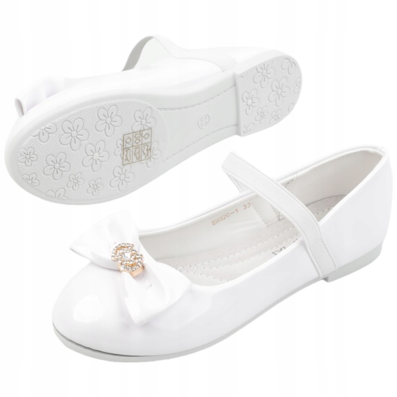 BIAŁE BALERINKI DZIEWCZĘCE GUMA PÓŁBUTY DO SZKOŁY WKŁADKA PROFILOWANA