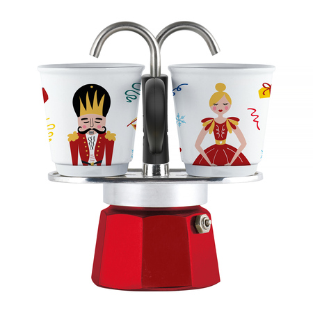 Bialetti Mini Express Lutcracker працює точно так само, як і класична кау Moka Express. Однак це дозволяє заварювати каву в унікальному стилі. Його верхня частина позбавлена типового танка, його замінили спеціальною платформою, на якій безпосередньо встановлені дві чашки. Серія Lutcracker передається його прикрасами та упаковкою до феєрики, різдвяного світу Лускунчика. модель Bialetti Mini Express 2TZ використовується для одночасно заварювання 2 чашки еспресо (загалом приблизно 90 мл). Загальна ємність - 100 мл.