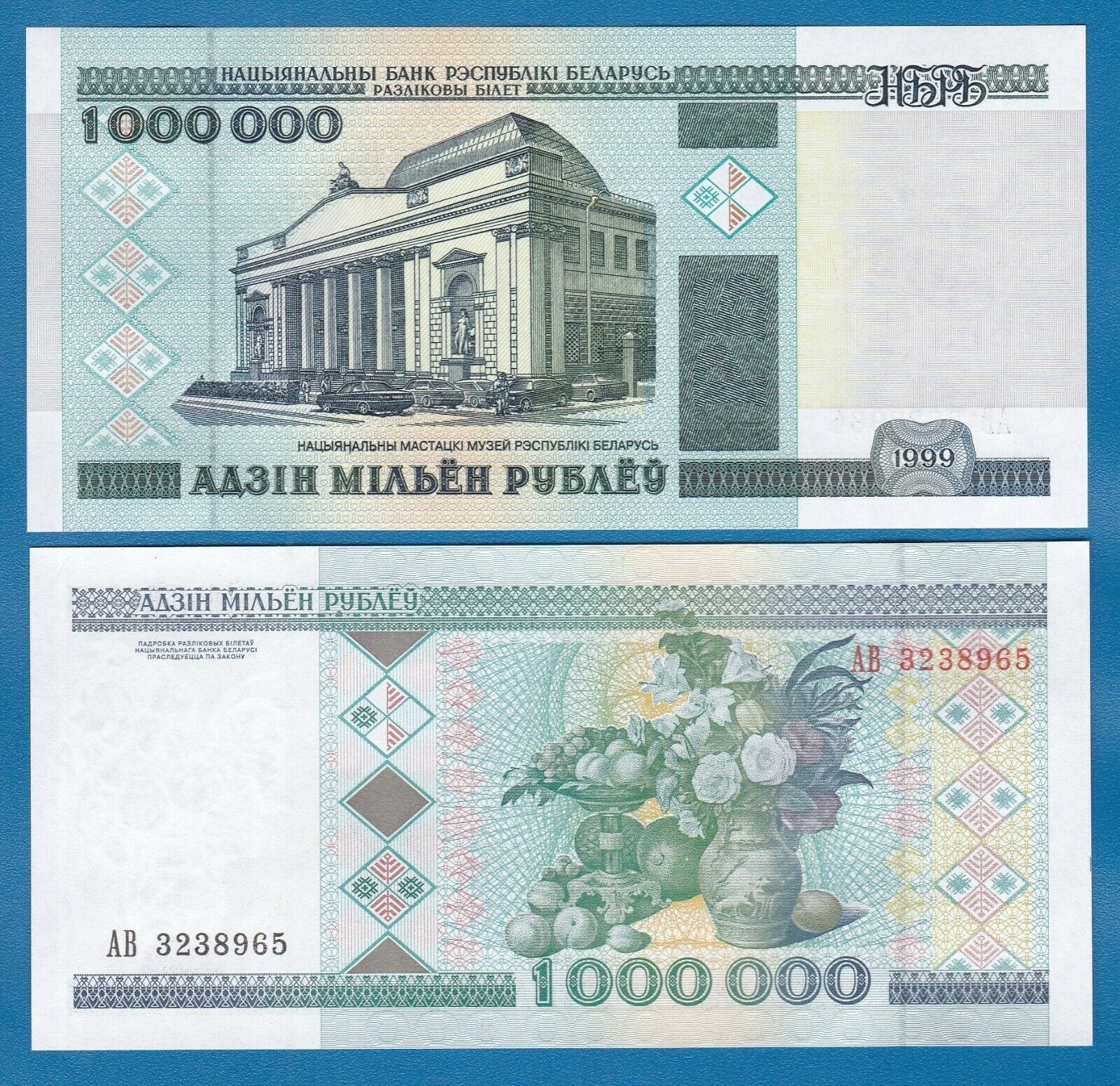 Красива банкнота номіналом 1 000 000 рублів з Білорусі 1999 року. (P-19) в абсолютно ідеальному банківському стані I (UNC).