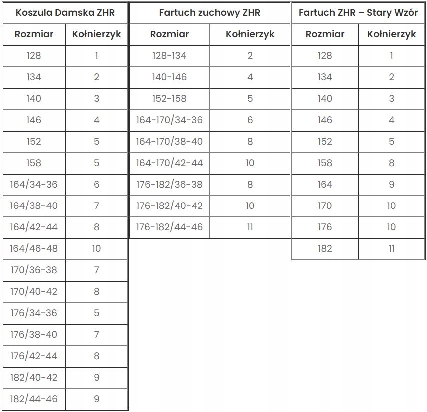 - доступні в різних розмірах, щоб відповідати будь-якій формі для дівчат або фартуху ZHR