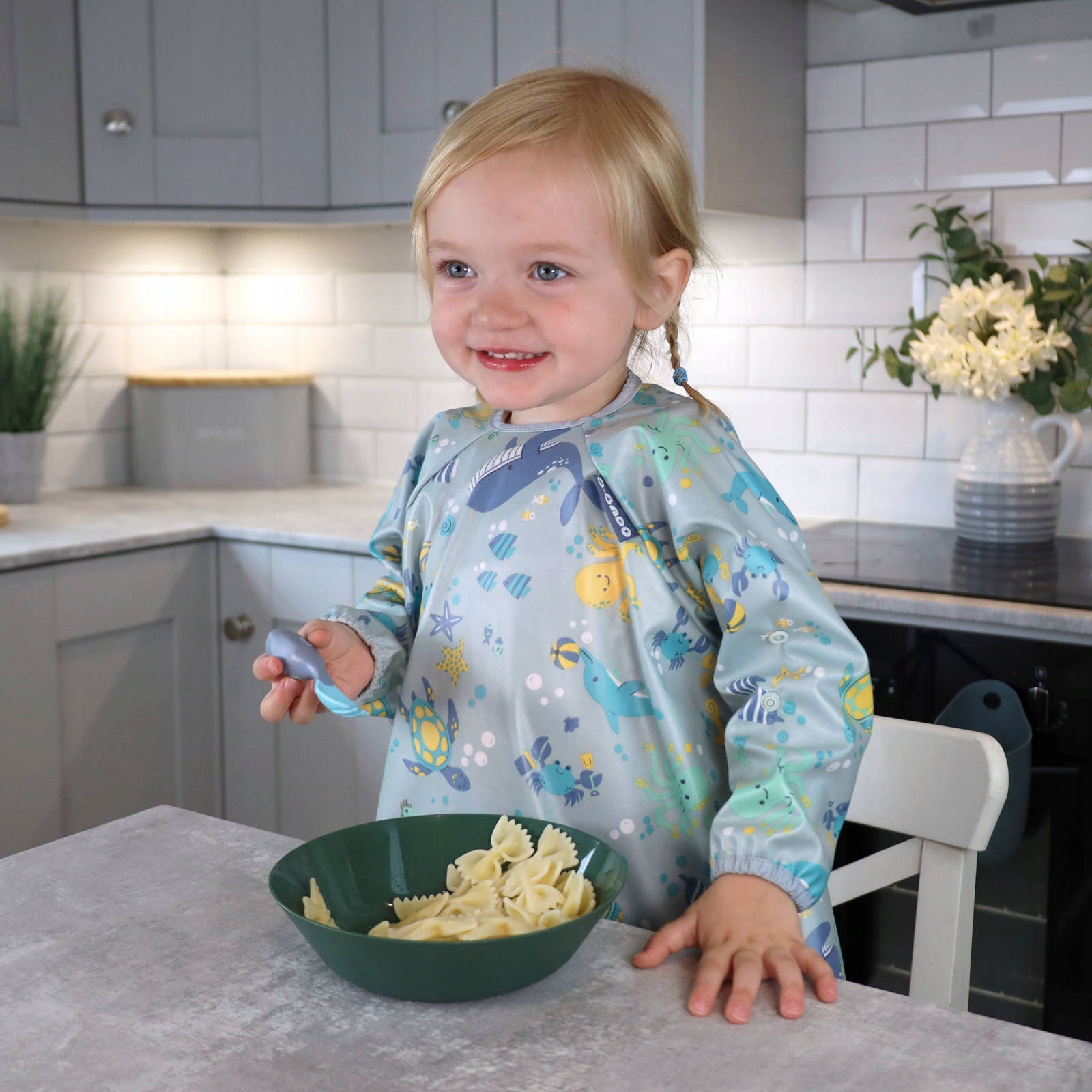 Завдяки унікальному безладному дизайну нагрудника BiBaDO навчання самостійному харчуванню стає великою пригодою як для дитини, так і для батьків.