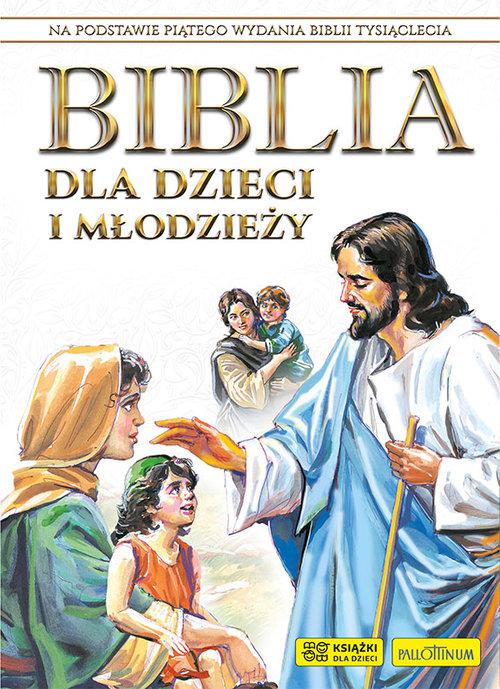 Biblia dla dzieci i młodzieży obwoluta I Komunii Świętej złote napisy M