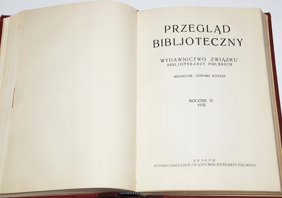 ОГЛЯД БІБЛІОТЕКИ. ВИДАВНИЦТВО СПІЛКИ ПОЛЬСЬКИХ БІБЛІОТЕК. РІК VVI / 1931-1932. РЕДАКТОР ЕДВАРД КУНТЦЕ.
