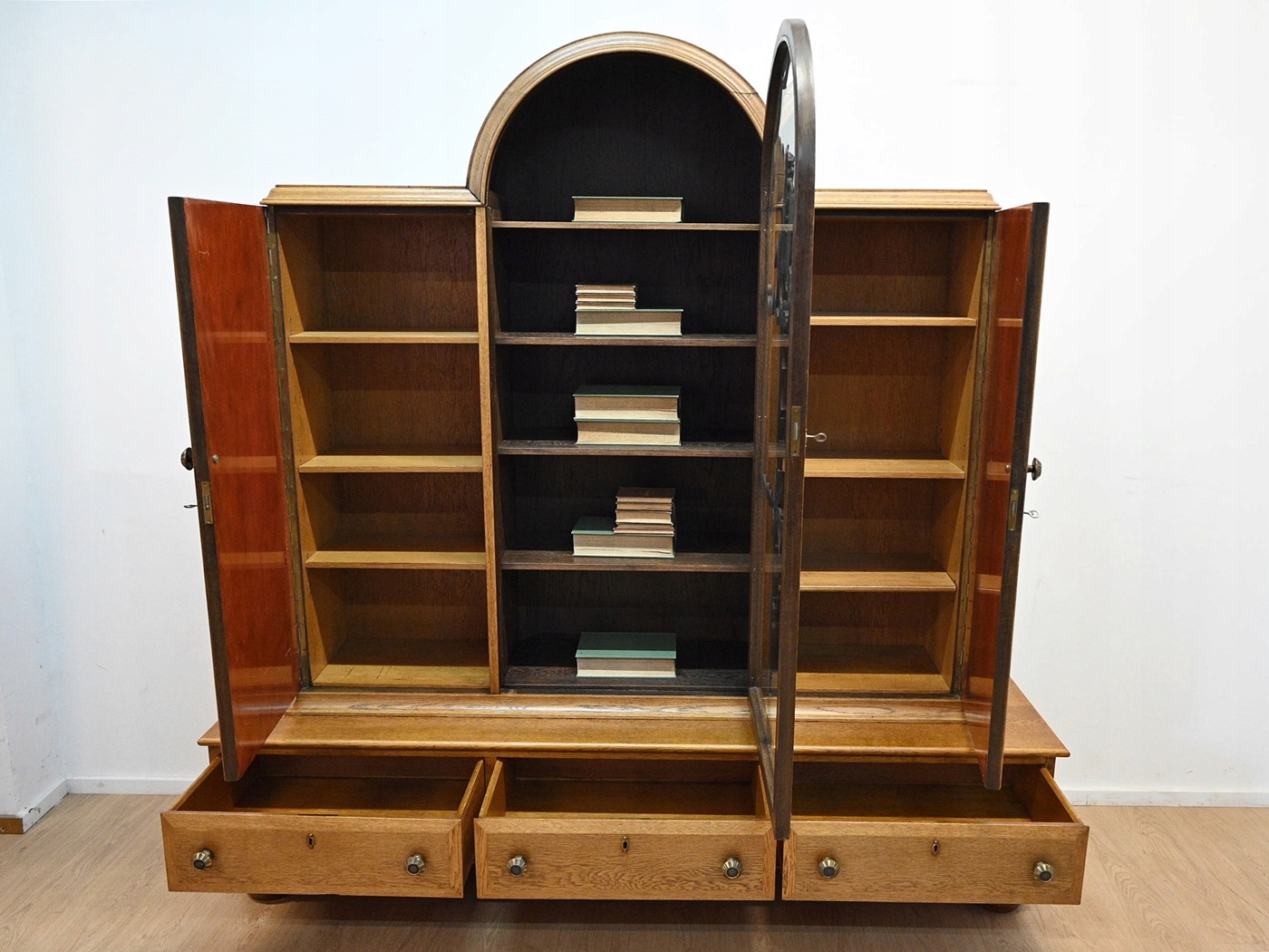 хороший стан. Меблі, підготовлені до використання. Зовнішні поверхні та центр меблів були оновлені. Меблі вже мають свої роки та сліди минулого часу, що не впливає на його естетичний прийом, вони є свідченням справжності меблів. Бібліотеку можна негайно поставити в квартиру.