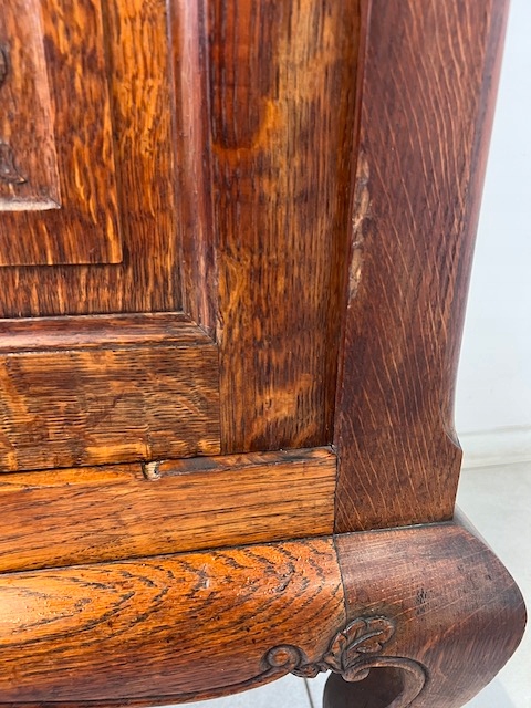 Книжкова шафа дводверна. Гламурний. Цікава, незвичайна модель. Виготовлена з масиву дуба. Він не розбирається і прибуде до нового власника неушкодженим. На знаках відсутні ручки. Встановлено патентний замок. Ми не маємо до нього ключа. Стан книжкової шафи, дефекти детально показано на фото. Книжкова шафа готова до розміщення.