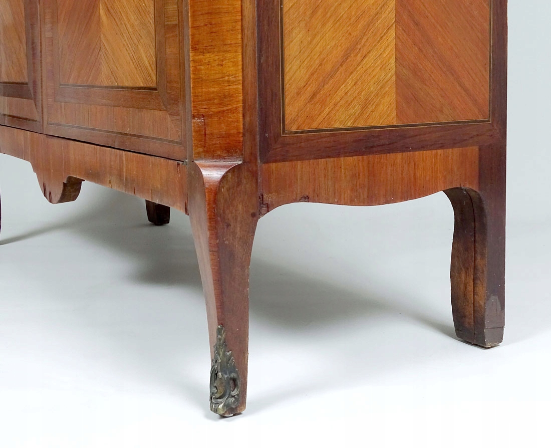 Конструкція з дуба, палісандровий шпон, латунні ключі та фурнітура, верхня частина з травертину, вибране, близько 1900 року.