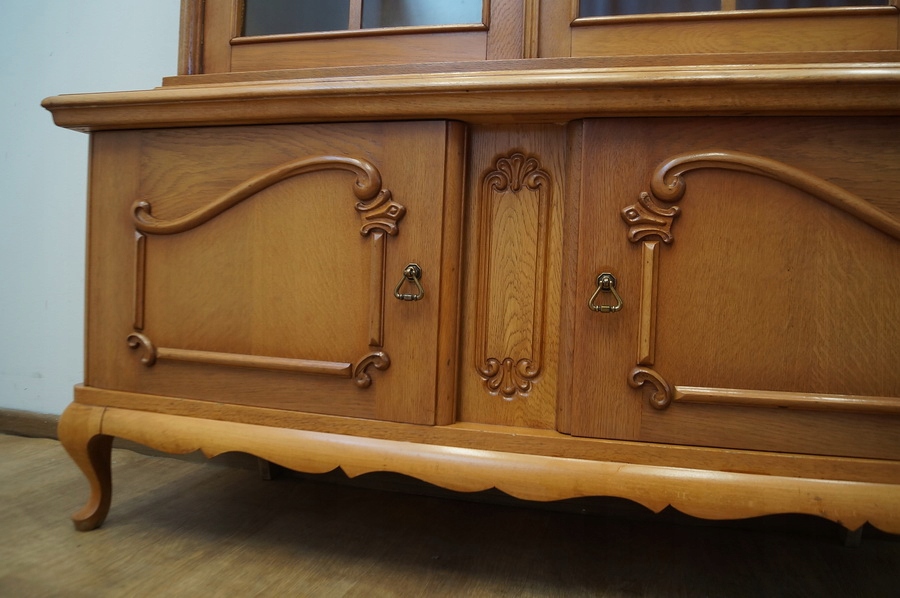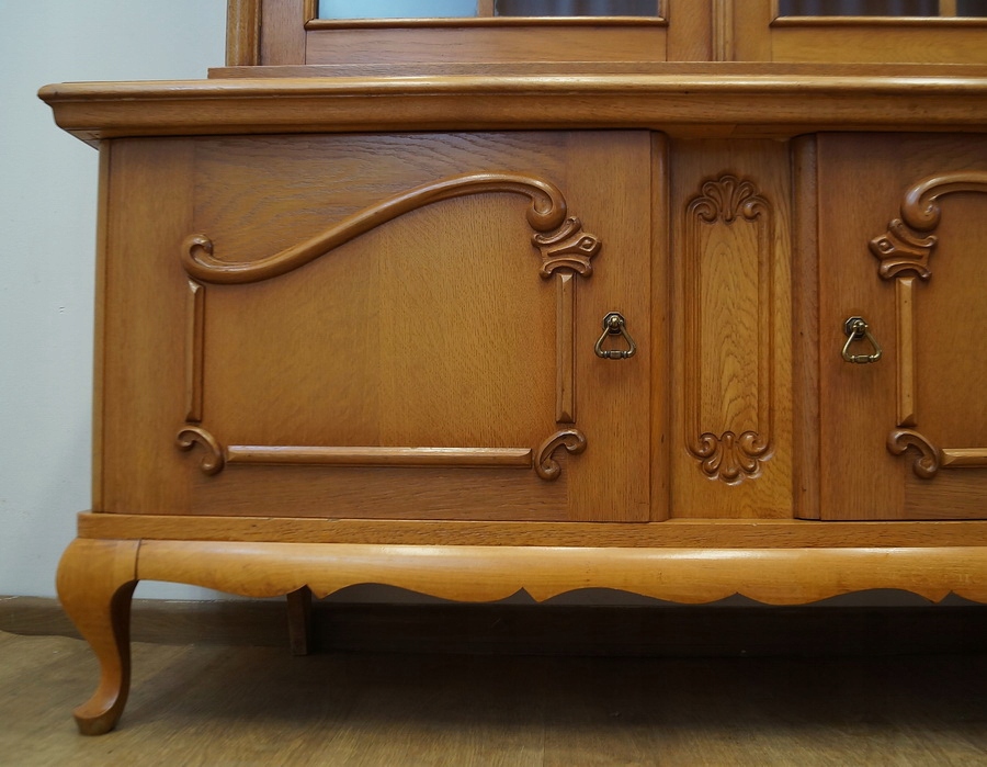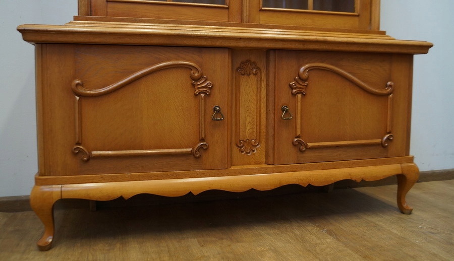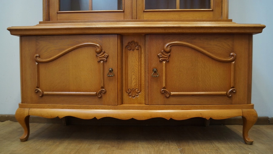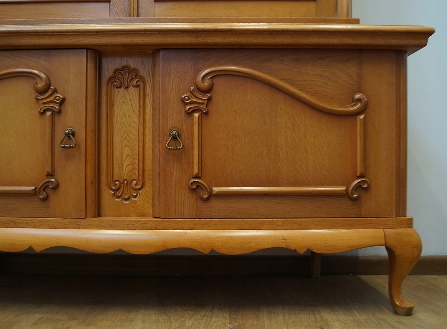 У нього є дві скляні двері, вікна, прикрашені мульчею, кульмінацією арочної форми, завершеної скульптурами. Дві нижні двері, красиво вирізані. Сайт, прикрашений чудовими скульптурами, спирається на красиві кабріолетні ноги. Дно закінчене декоративним шумом.