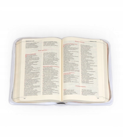 Просматривая «Библия Ветхий и Новый Завет Белый кожаный переплет на молнии.», вы можете быть уверены, что данный товар из каталога «Молитвенники» будет доставлен из Польши и проверен на целостность. В цене товара, указанной на сайте, учтена доставка из Польши. Внимание!!! Товары для Евросоюза, согласно законодательству стран Евросоюза, могут отличаться упаковкой или наполнением.