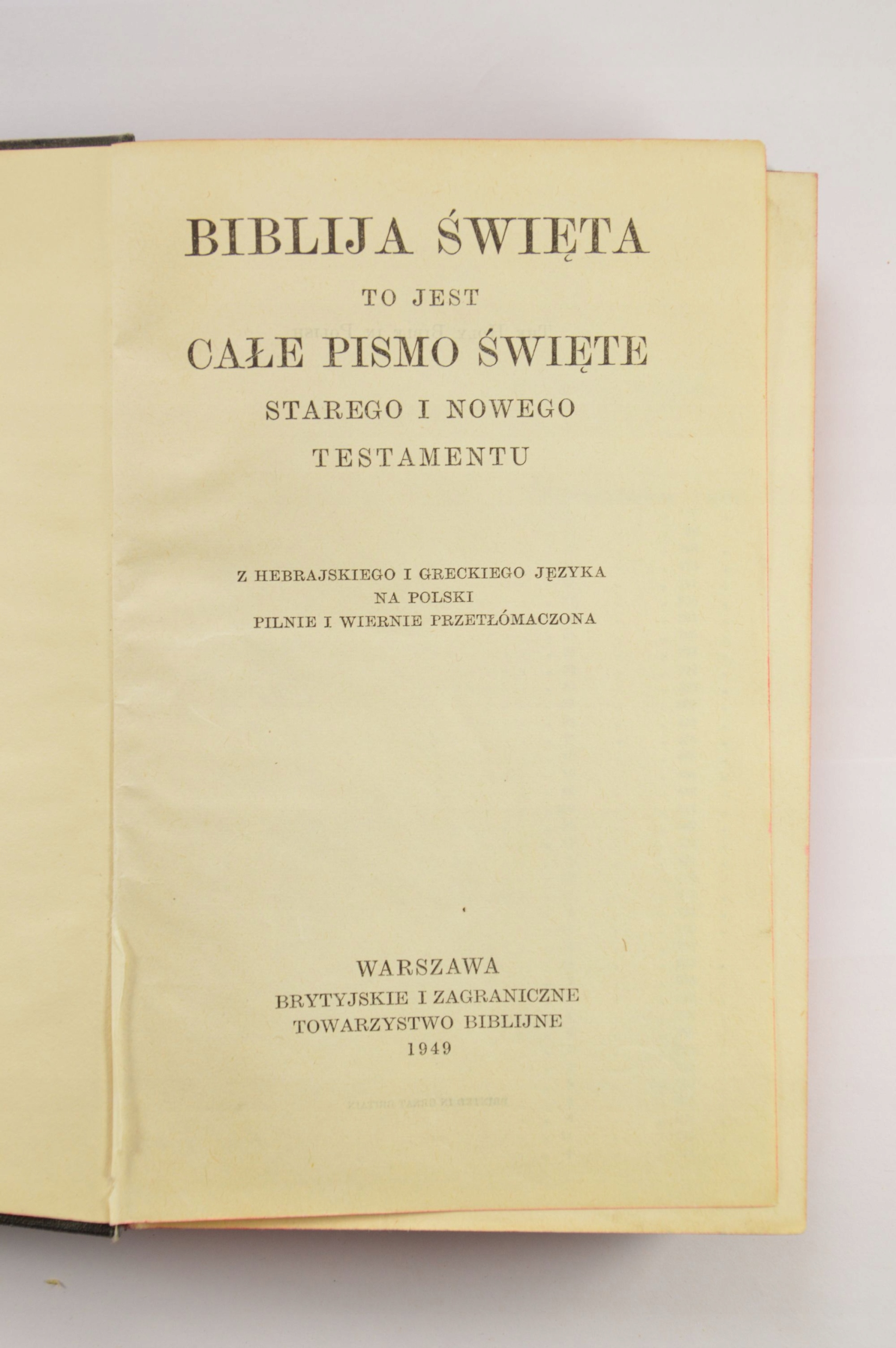 Оплачивая «Библия Старого и Нового Завета 1949 года.», вы можете быть уверены, что данное изделие из каталога «Религия» будет доставлено из Польши и проверено на целостность. В цене товара, указанной на сайте, учтена доставка из Польши. Внимание!!! Товары для Евросоюза, согласно законодательству стран Евросоюза, могут отличаться упаковкой или наполнением.