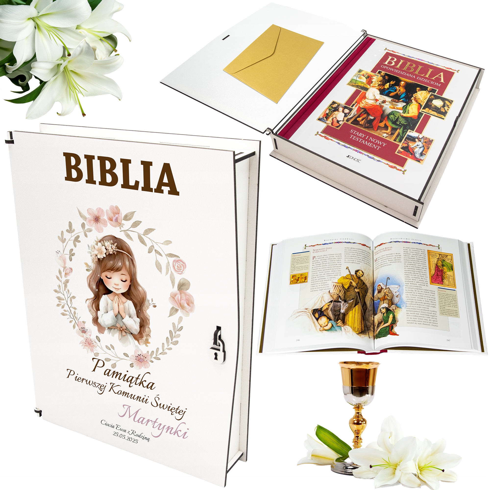 Біблія в коробці сувенір першого подарунка Святого Причастя для Причастя