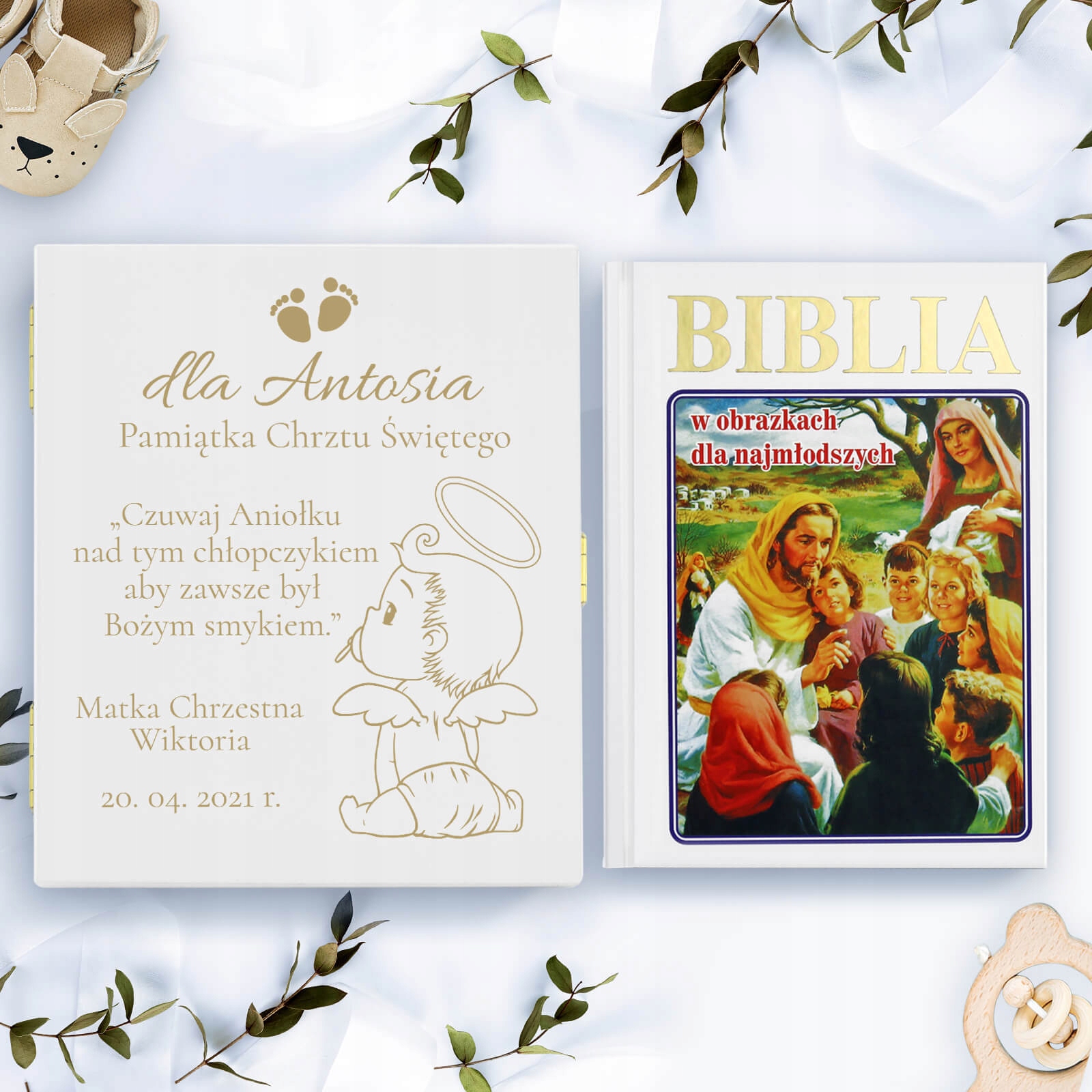Якщо ви плануєте купити подарунок для дитини, рекомендуємо гарну Дитячу Біблію в дерев'яній коробці. Це оригінальна ідея для подарунка на Хрещення. Оригінальний характер подарунка та ваша вигравірувана присвята зроблять його ідеальним сувеніром на все життя.