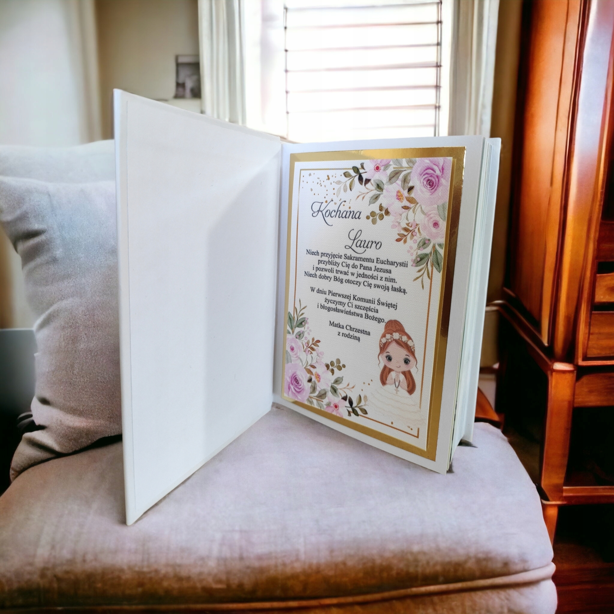 - гарно виготовлена з вражаючою присвятою до Першого Причастя, яка буде оригінальним і унікальним подарунком