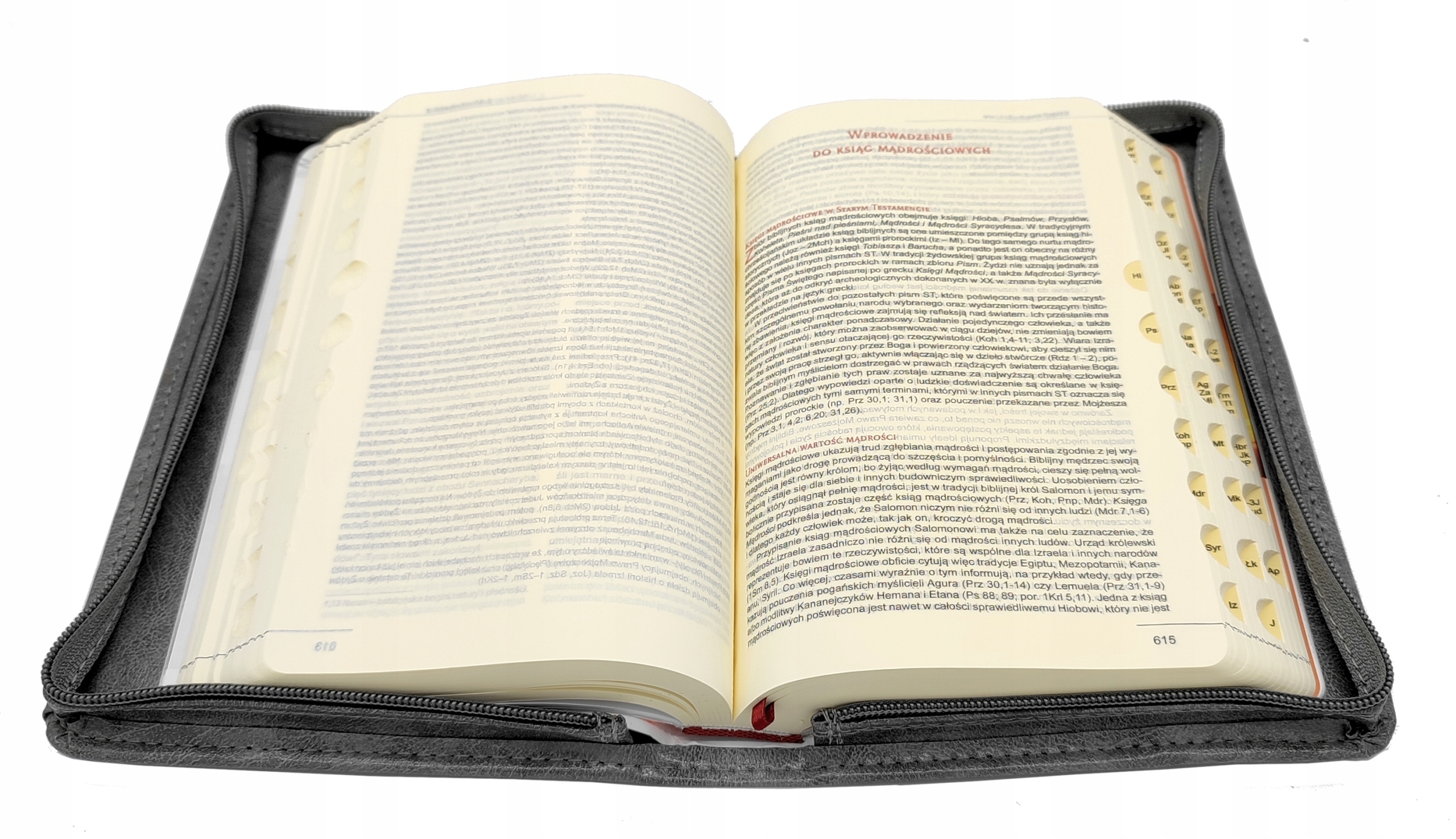 - зрозумілий макет, двоколірний друк, позначки окремих книг на полях для полегшення текстового пошуку, стрічку;