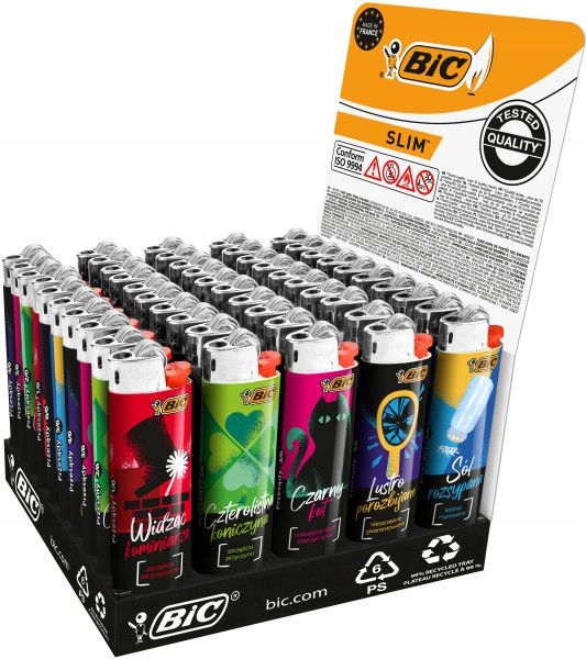 Це не лише класичний кишеньковий світлий BIC - він також прикрашений ефективним візерунком і характеризується акуратною формою, завдяки якій вона підійде скрізь. Елегантна форма запальнички ідеальна в руці. Ви можете легко покласти його в кишеню, гаманець або рюкзак і взяти з собою всюди. BIC Slim Beliter має таку ж знакову еліптичну форму та виразні кольори, які відрізняють її від інших. Ця тонша версія забезпечить до 1800 стрільби протягом її експлуатаційного періоду - тобто майже вдвічі більше, ніж інші польотні запальнички порівнянних розмірів. Усі ці фантастичні функції забезпечують реальну цінність, а запальнички доступні в широкому діапазоні нових, привабливих конструкцій. Шукайте останні мотиви та конструкції BIC запальничок. Безпека є найвищим пріоритетом для BIC - ця запальничка з геніальною стрункою формою була розроблена для відповідності або перевищення міжнародних стандартів. Жоден легший не захищений від 100% від початку дитини, але ви можете бути впевнені, що ця модель дуже стійка - понад 85% дітей до 51 місяця не в змозі її запустити. Однак BIC тут не зупинився: висота полум'я встановлюється автоматично, щоб надійно запалити на одній висоті. BIC також використовує стійкий до DELRIN для впливу смоли, завдяки якому організм ще більш міцний, ніж вимагають правила безпеки. Усі кишенькові запальнички BIC виробляються на власних сучасних фабриках BIC у Франції, в яких кожен запальничка проходить понад 50 різних автоматизованих контрольних якості. Елегантний і стрункий. Просто bic.