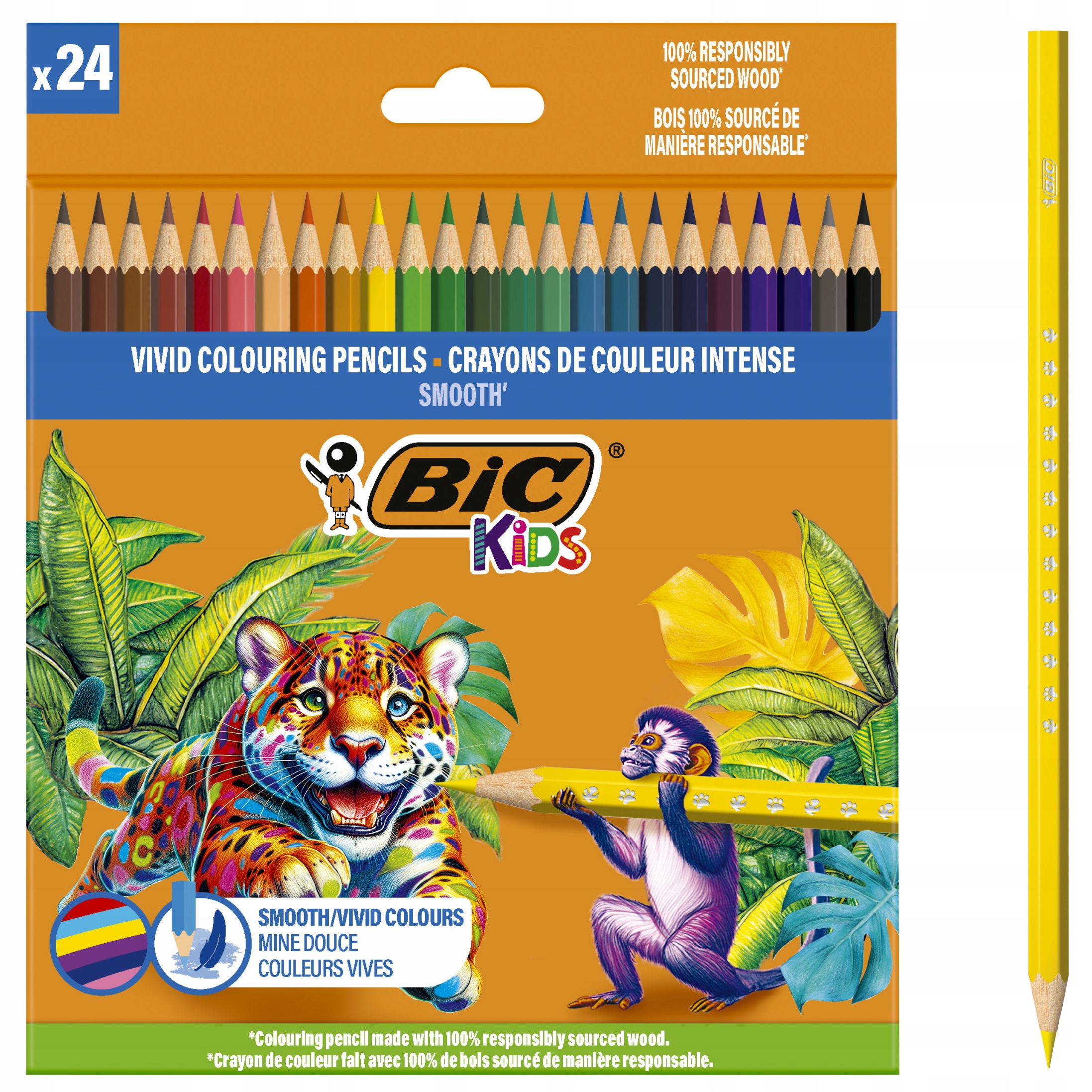 BIC Діти гладко Еко -дерев’яні олівці для дітей коробка 24 кольори