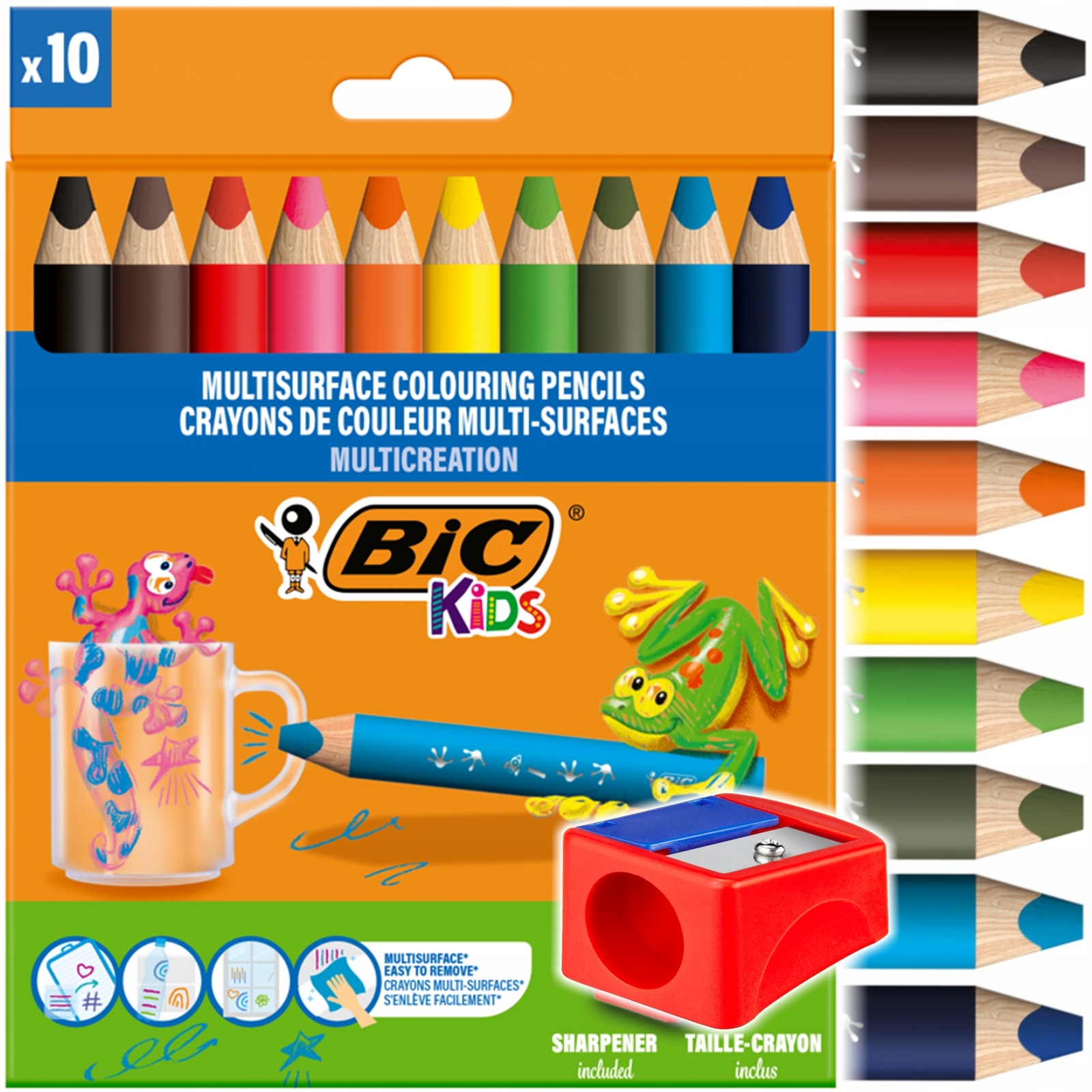 BIC Multisurface Трикутні Товсті ОЛІВЦІ 10 кольорів ПИШУТЬ НАВІТЬ ПО СКЛУ