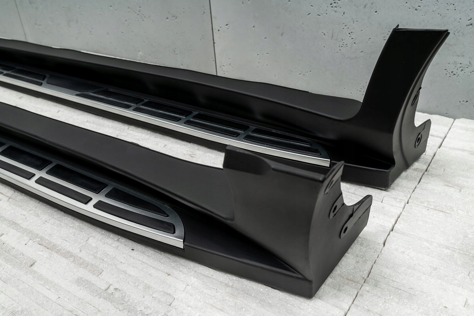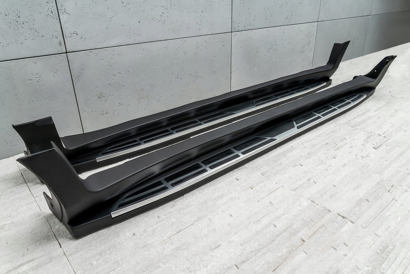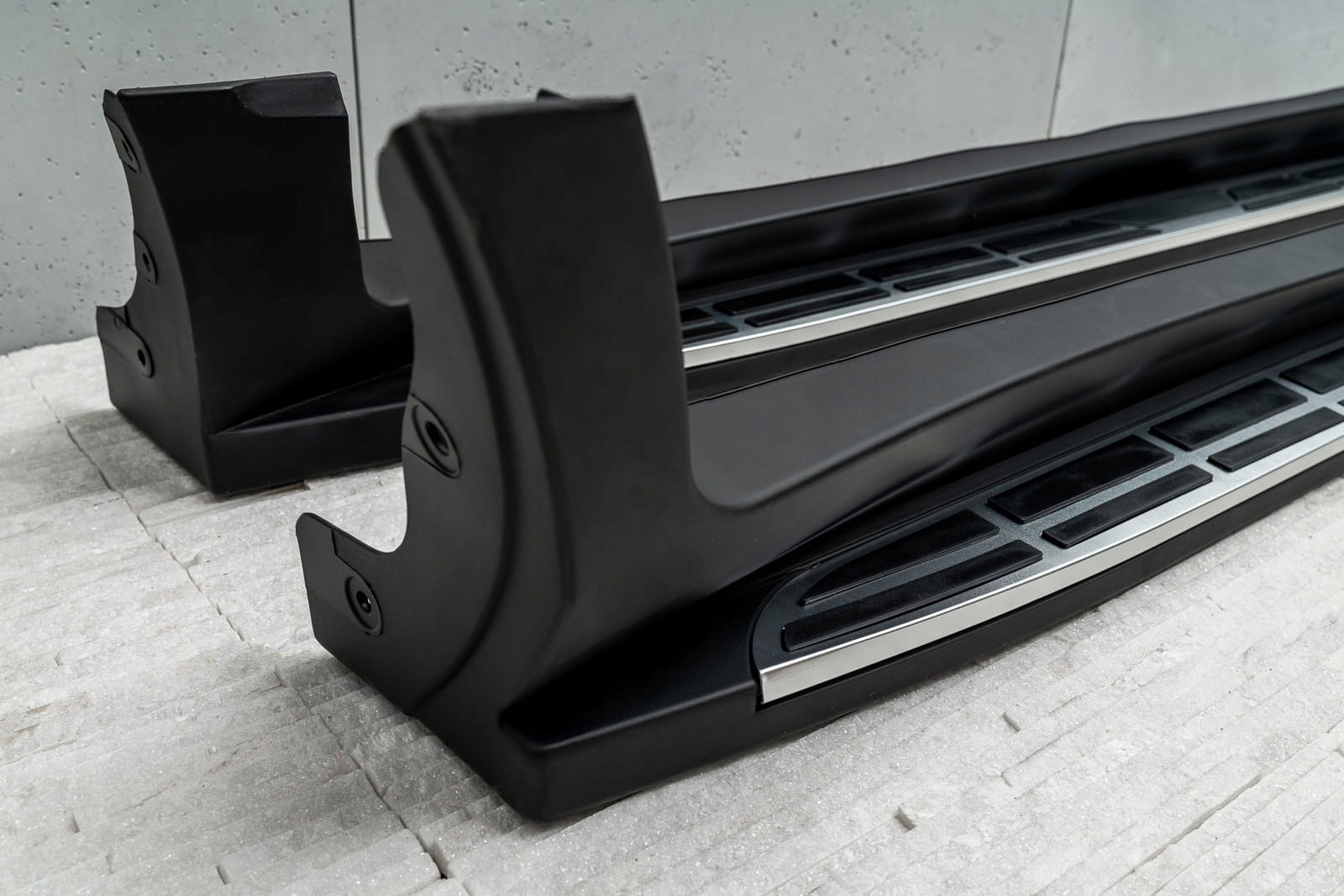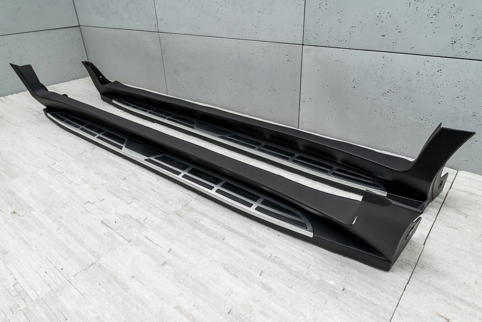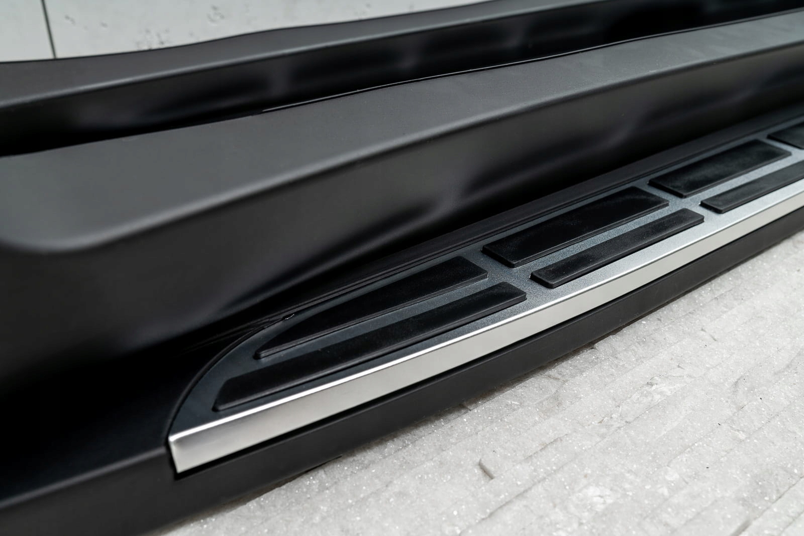Бічні підніжки розроблено для підвищення комфорту під час входу та виходу з автомобіля, а також для забезпечення більш зручного робочого положення під час розміщення вантажів на даху автомобіля. Пороги не тільки забезпечують комфорт, але і підвищують безпеку, що особливо важливо для дітей і людей похилого віку.