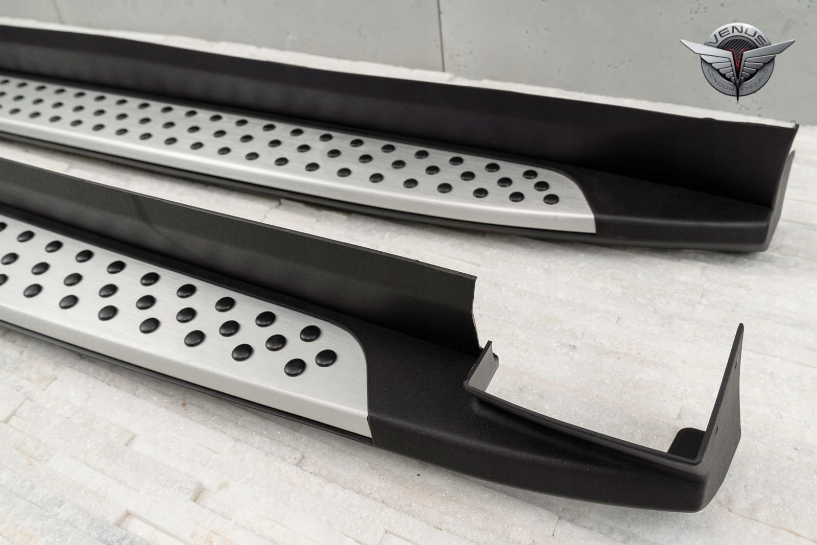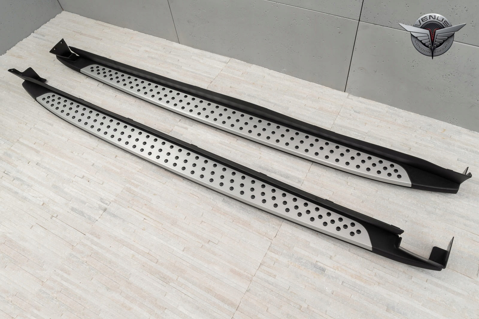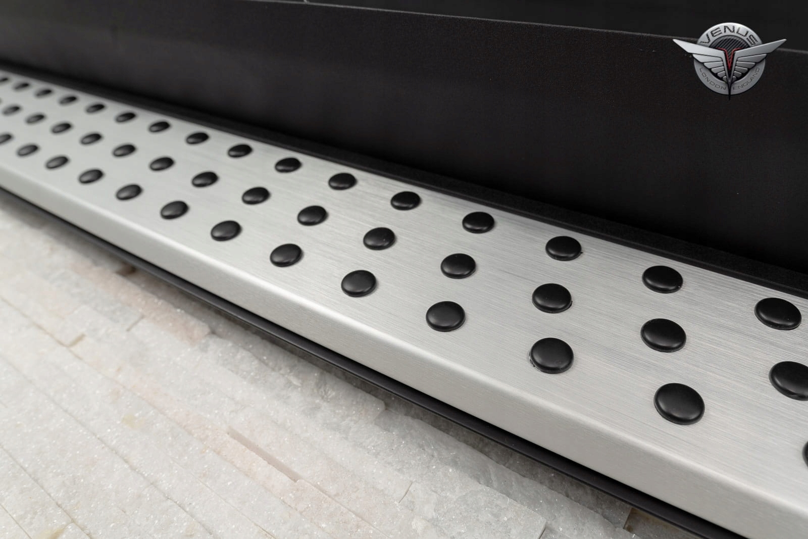 Бічні підніжки були розроблені для підвищення комфорту під час входу та виходу з автомобіля, а також для більш зручного робочого положення під час розміщення вантажу на даху автомобіля. Пороги не тільки забезпечують комфорт, але і підвищують безпеку, що особливо важливо для дітей і людей похилого віку.