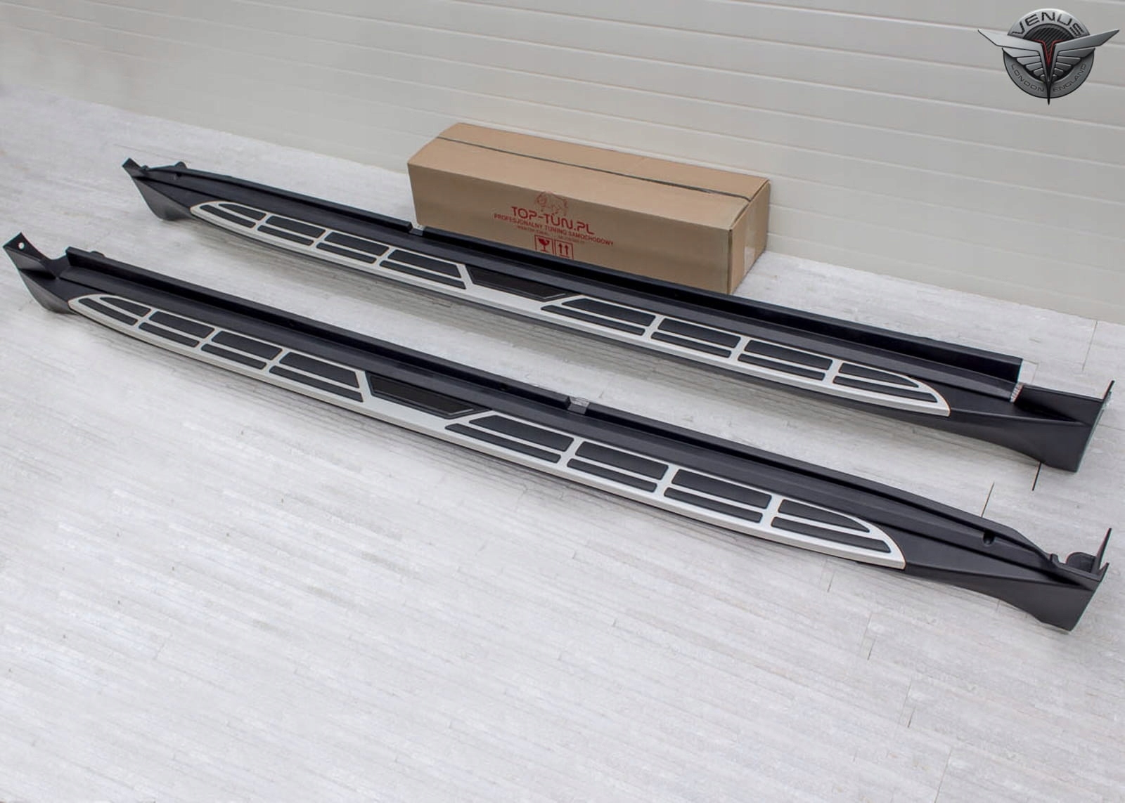 Бічні підніжки були розроблені для підвищення комфорту під час входу та виходу з автомобіля, а також для більш зручного робочого положення під час розміщення вантажів на даху автомобіля. Пороги не тільки забезпечують комфорт, але і підвищують безпеку, що особливо важливо для дітей і людей похилого віку.